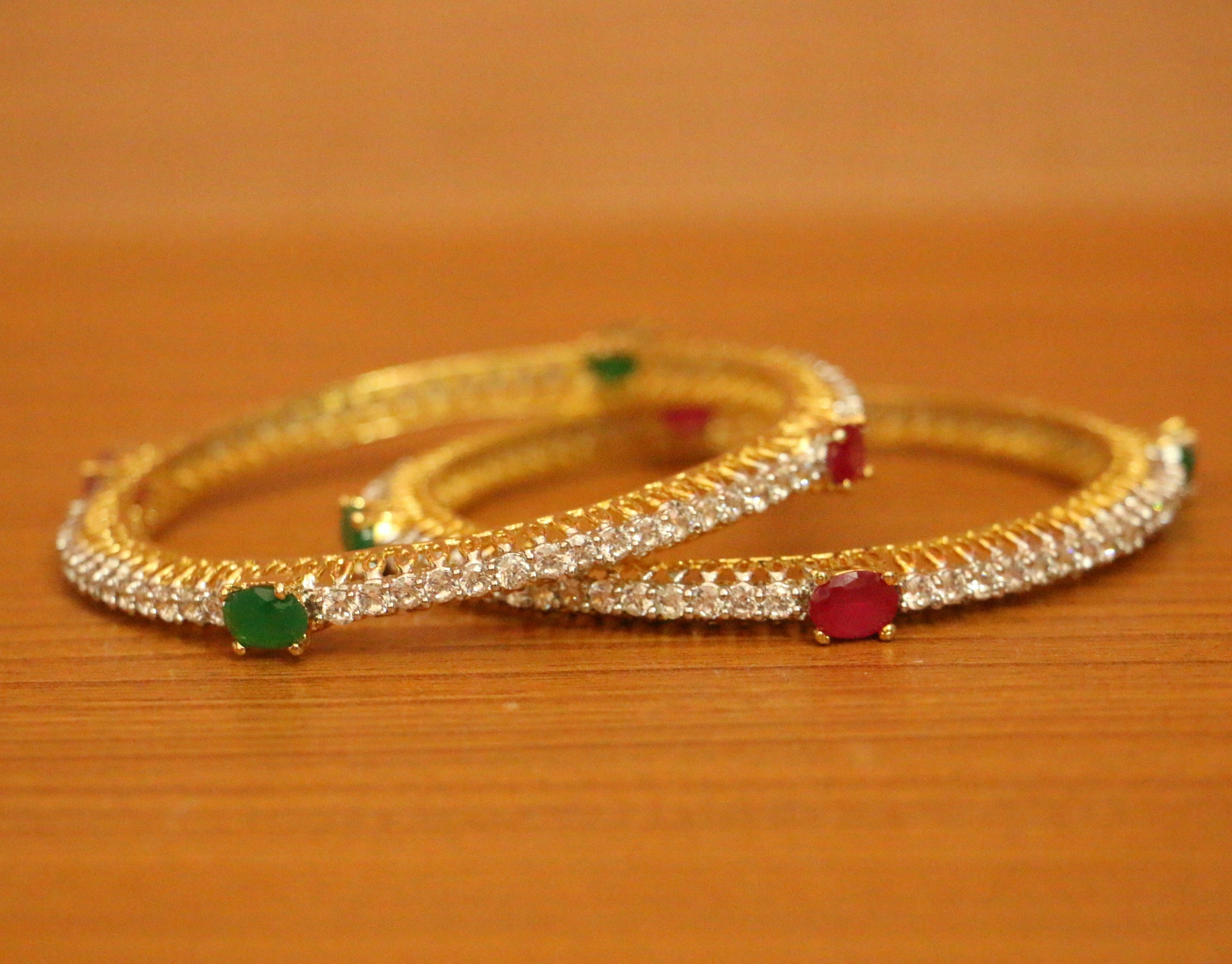 DIAMOND LOOK RUBY & EMERALD LOOK GOLD PLATED BANGLES