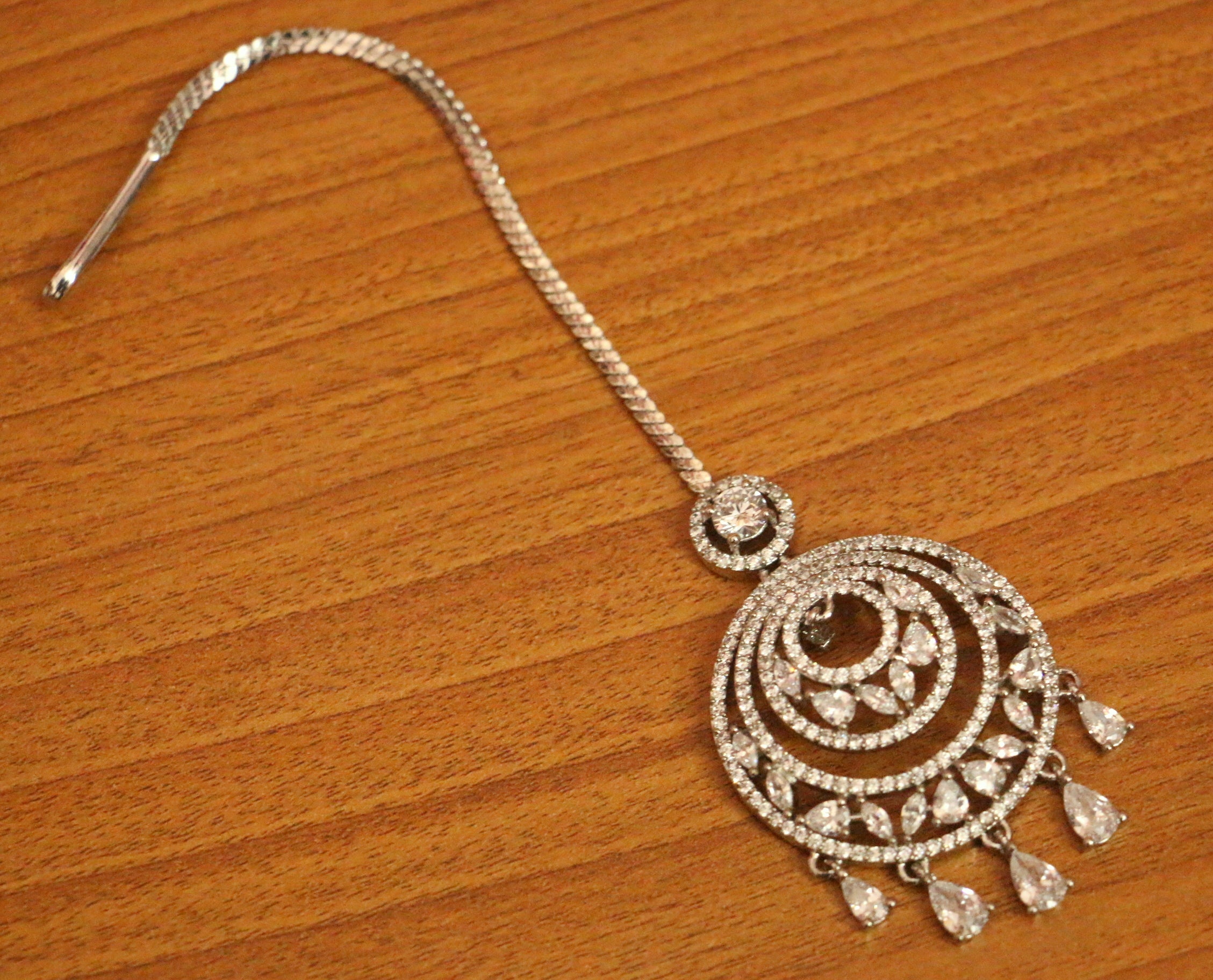 Diamond Look Silver Plated Cz Wedding Maang Tikka