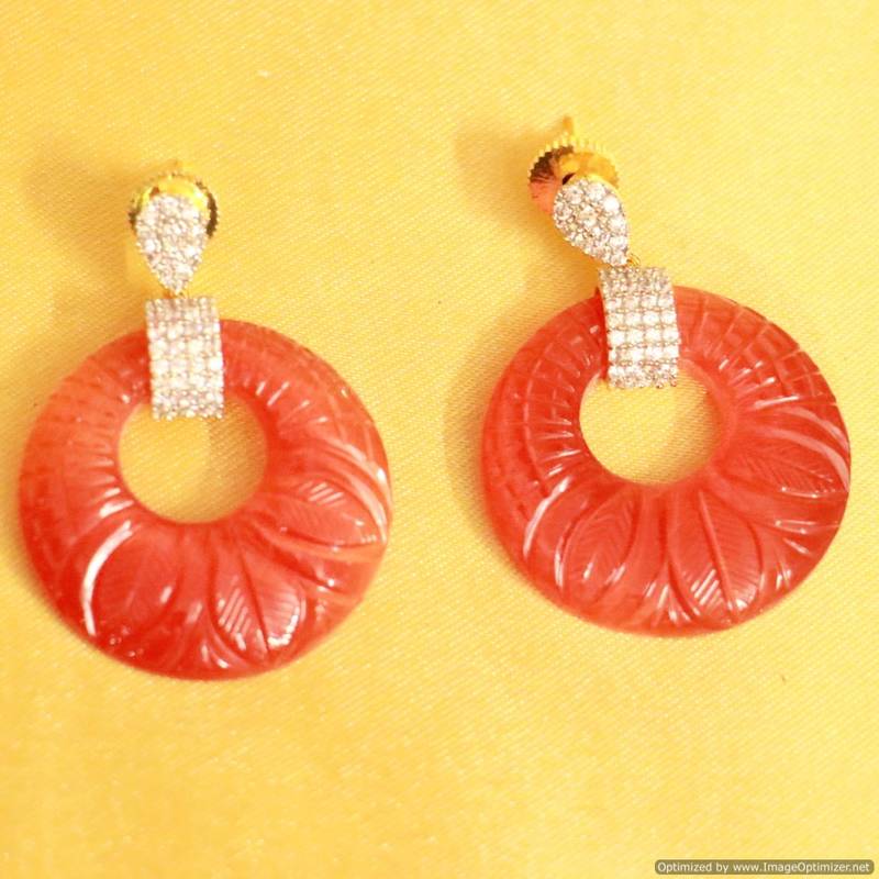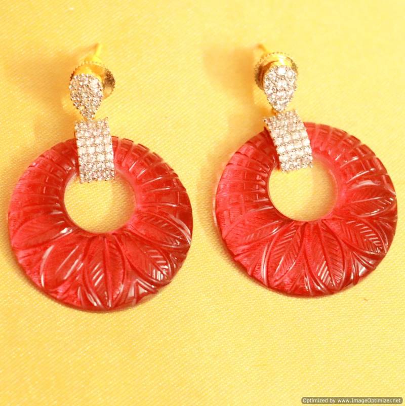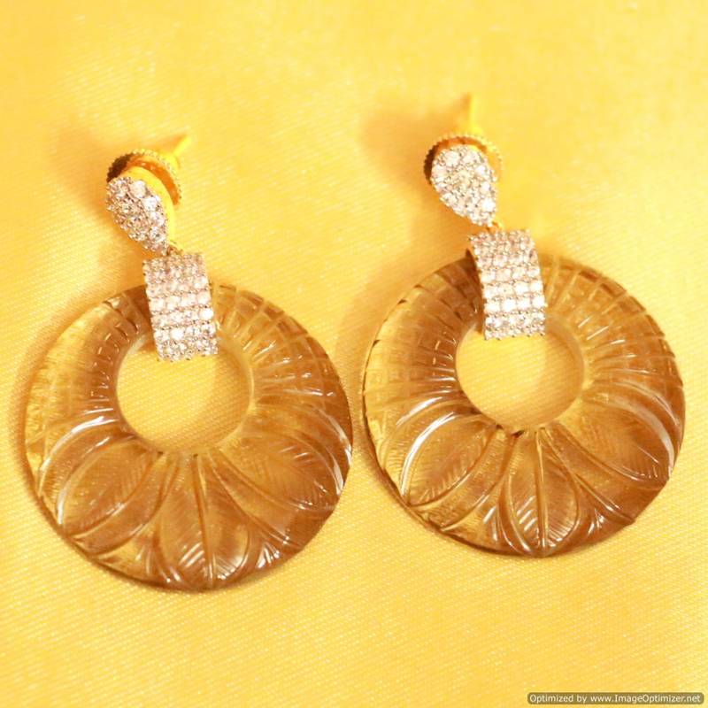 These beautiful Earrings are handcrafted in silver alloy with imitation semi precious stone of zircon of very fine quality and semi precious stones . These earrings are coated with 18 kt gold polish which give them a unique look . An absolutely stunning piece to own and are very light in weight.