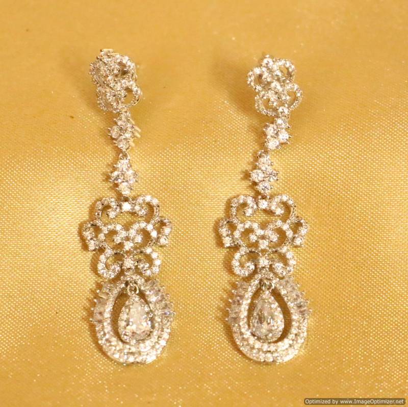 These beautiful earrings are handcrafted in brass alloy with imitation semi precious american diamonds work of very fine quality. These earrings are coated with 18 kt gold polish which give them a unique look . An absolutely stunning piece to own and are very light in weight.
