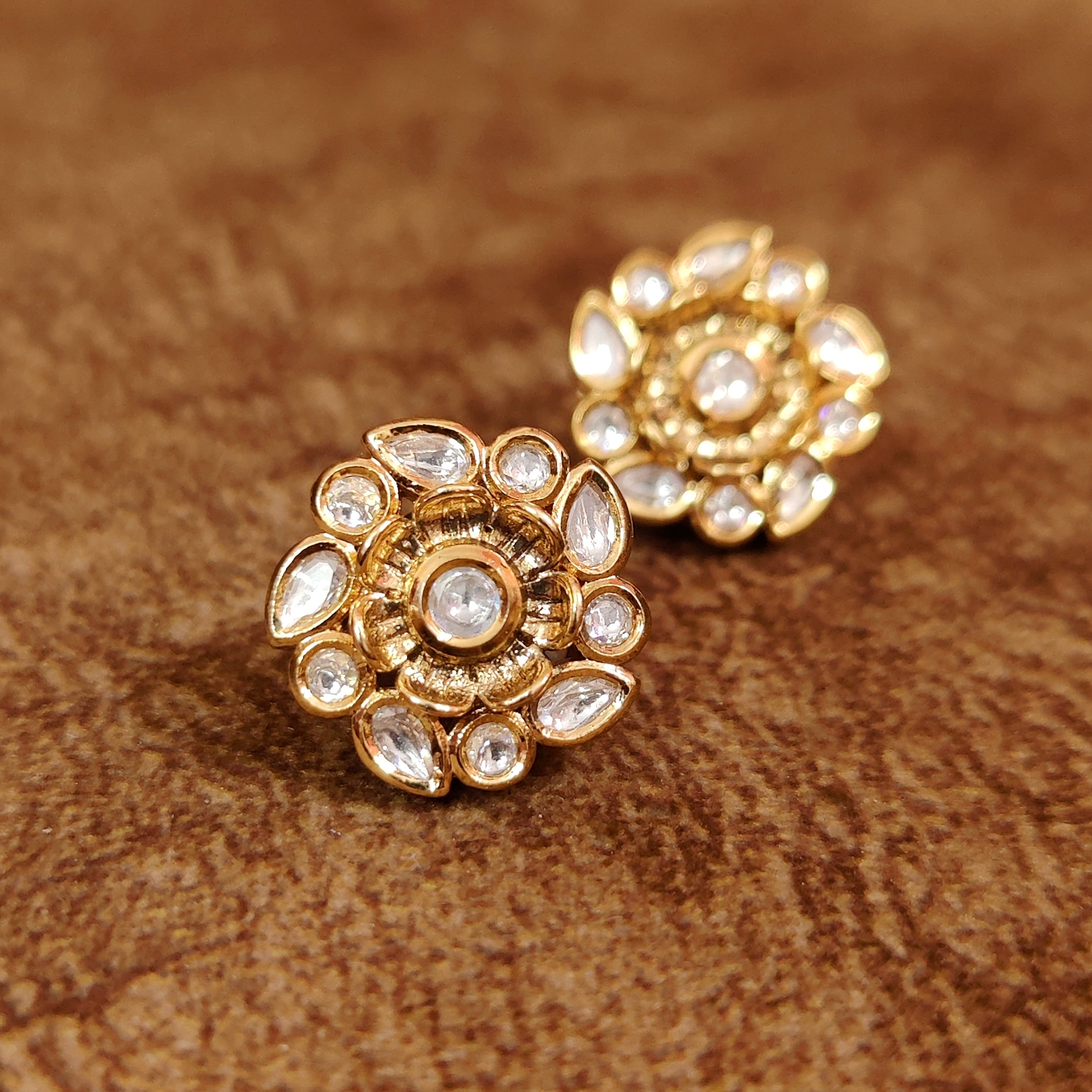 Discover the timeless beauty of our elegant white Kundan studs, perfect for adding a touch of sophistication to any ensemble. These exquisite earrings feature intricate Kundan work with sparkling white stones set in a beautifully crafted gold-plated base. Ideal for both special occasions and everyday elegance, these studs are a versatile addition to your jewelry collection.