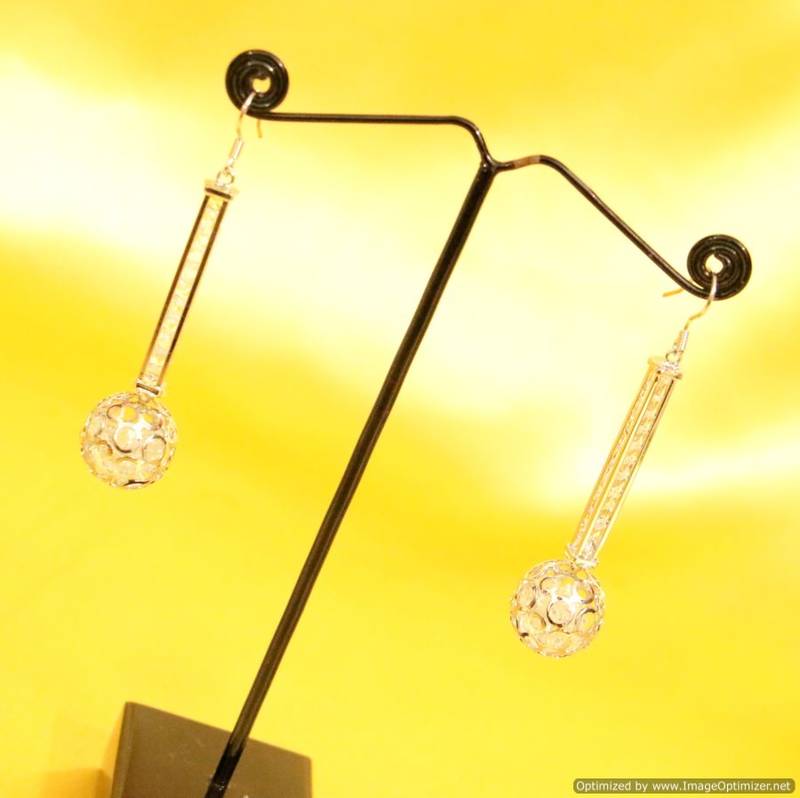 "These beautiful Earrings are handcrafted in copper alloy with imitation american diamond of very fine quality . These earrings are coated with 18 kt white gold polish which give them a unique look . An absolutely stunning piece to own and are very light in weight.