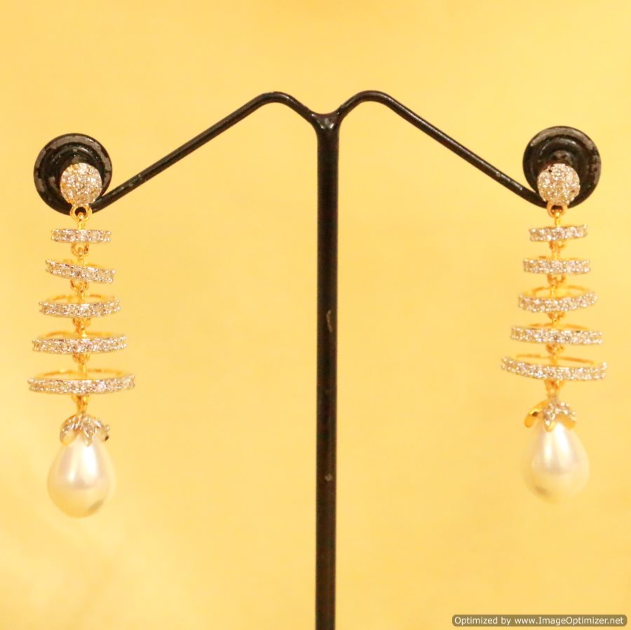 These beautiful Earrings are handcrafted in silver alloy and american diamond of very fIne quality .These earrings are coated with 18 kt gold polish which give them a unique look . An absolutely stunning piece to own and are very light in weight.
