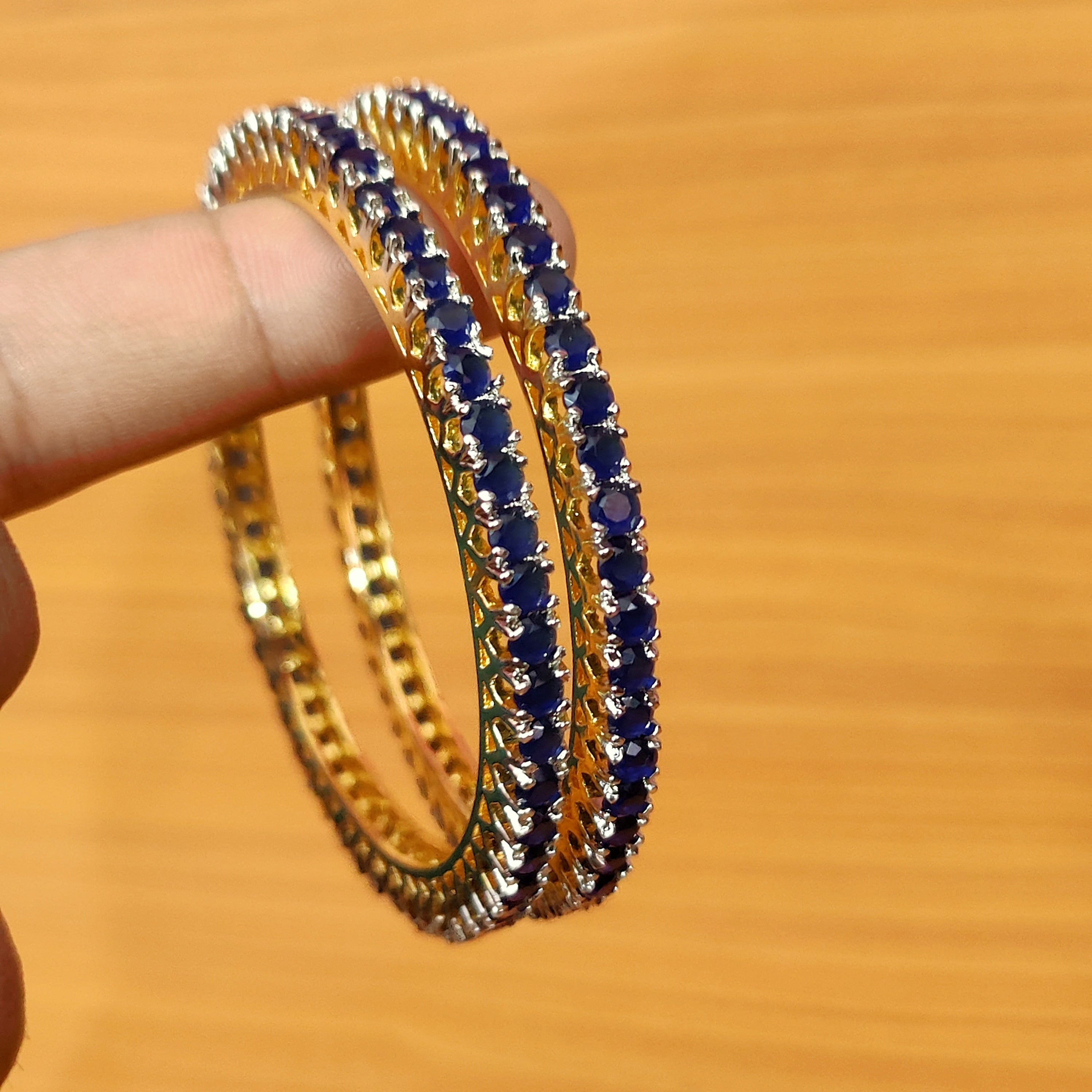 Embellished Gold Look Blue Sapphire Single Line Bangles