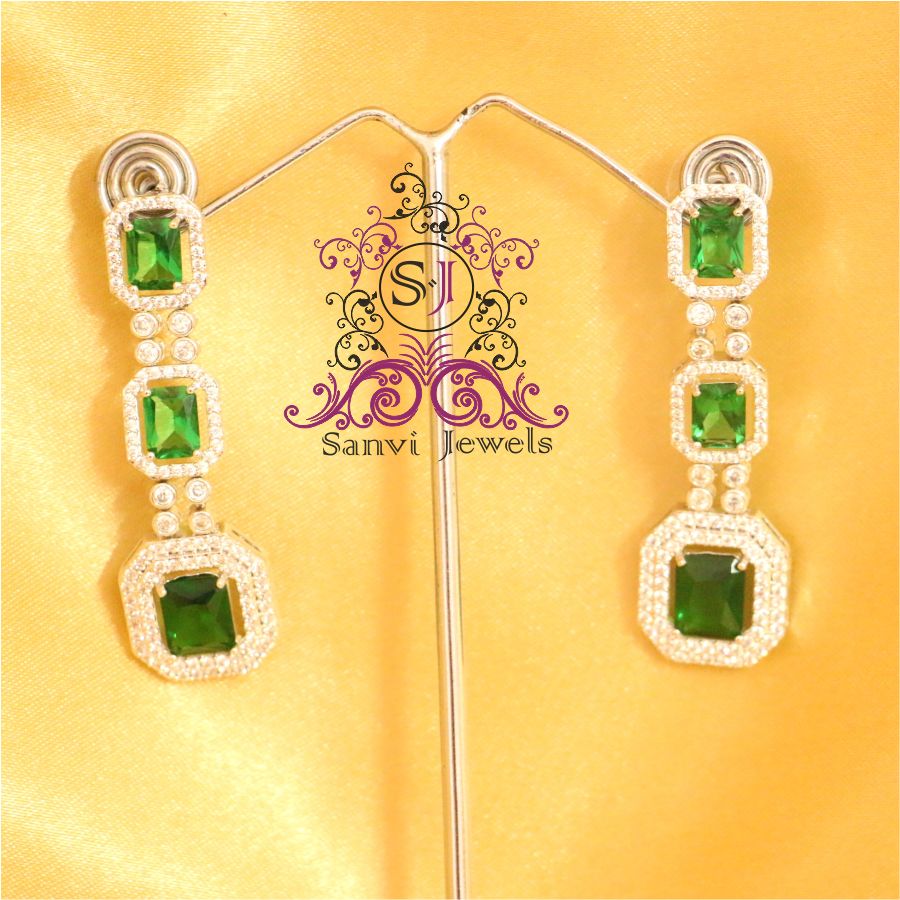 Marvel at these handcrafted silver alloy emerald look earrings, featuring top-tier imitation AAA quality zircons with top-notch colour stones. Enhanced with an 18 kt white gold plating, their unique look will make them a treasured part of your collection. Plus, you'll hardly even feel their lightweight beauty!