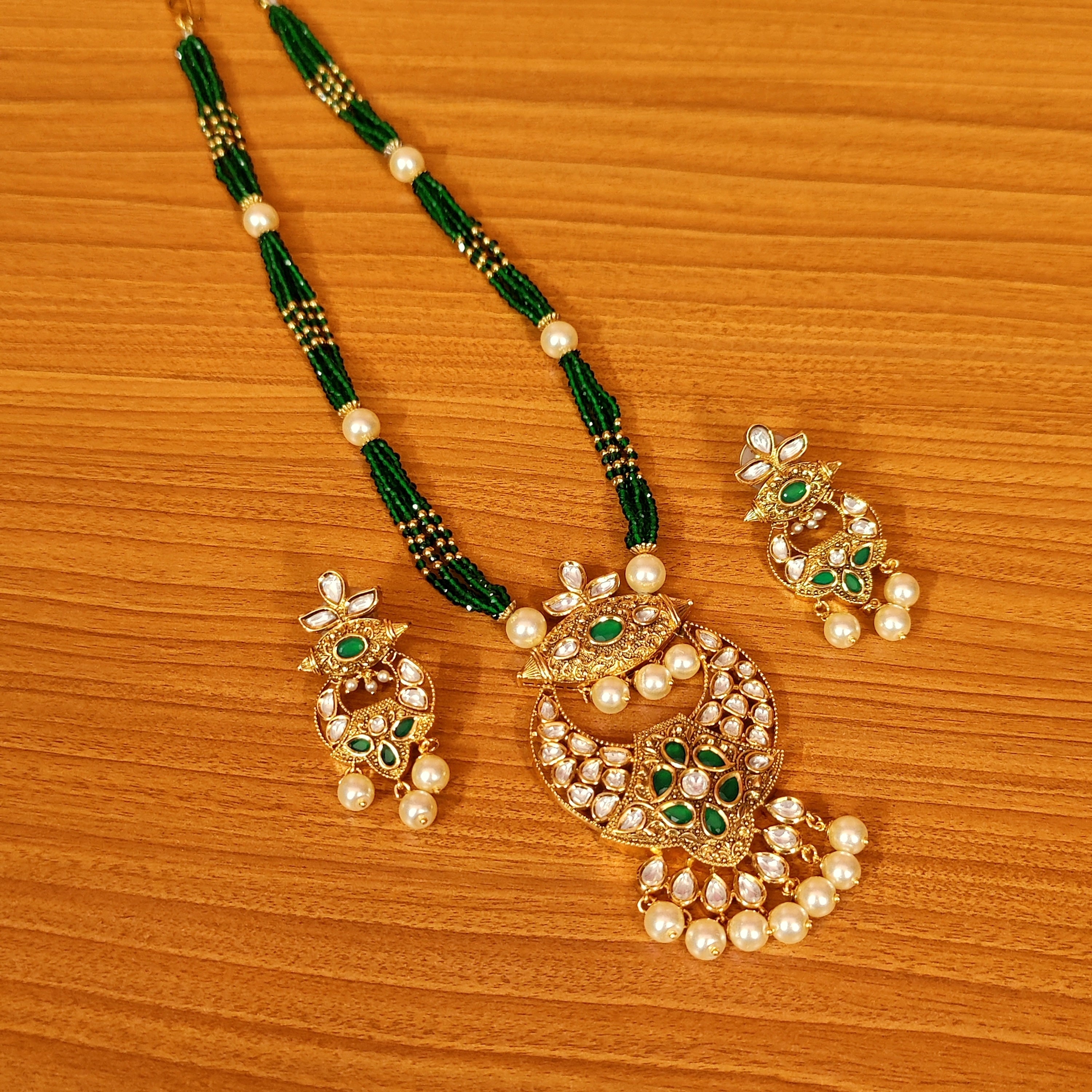 EMERALD KUNDAN POLKI & PEARL ROYAL PENDANT SET