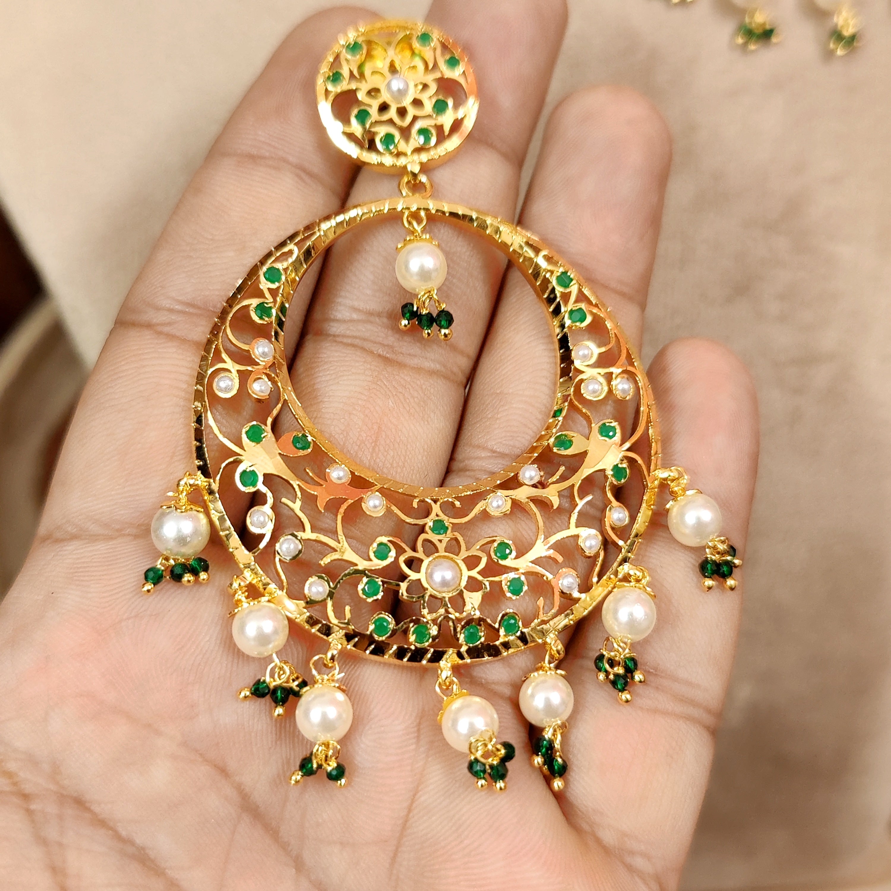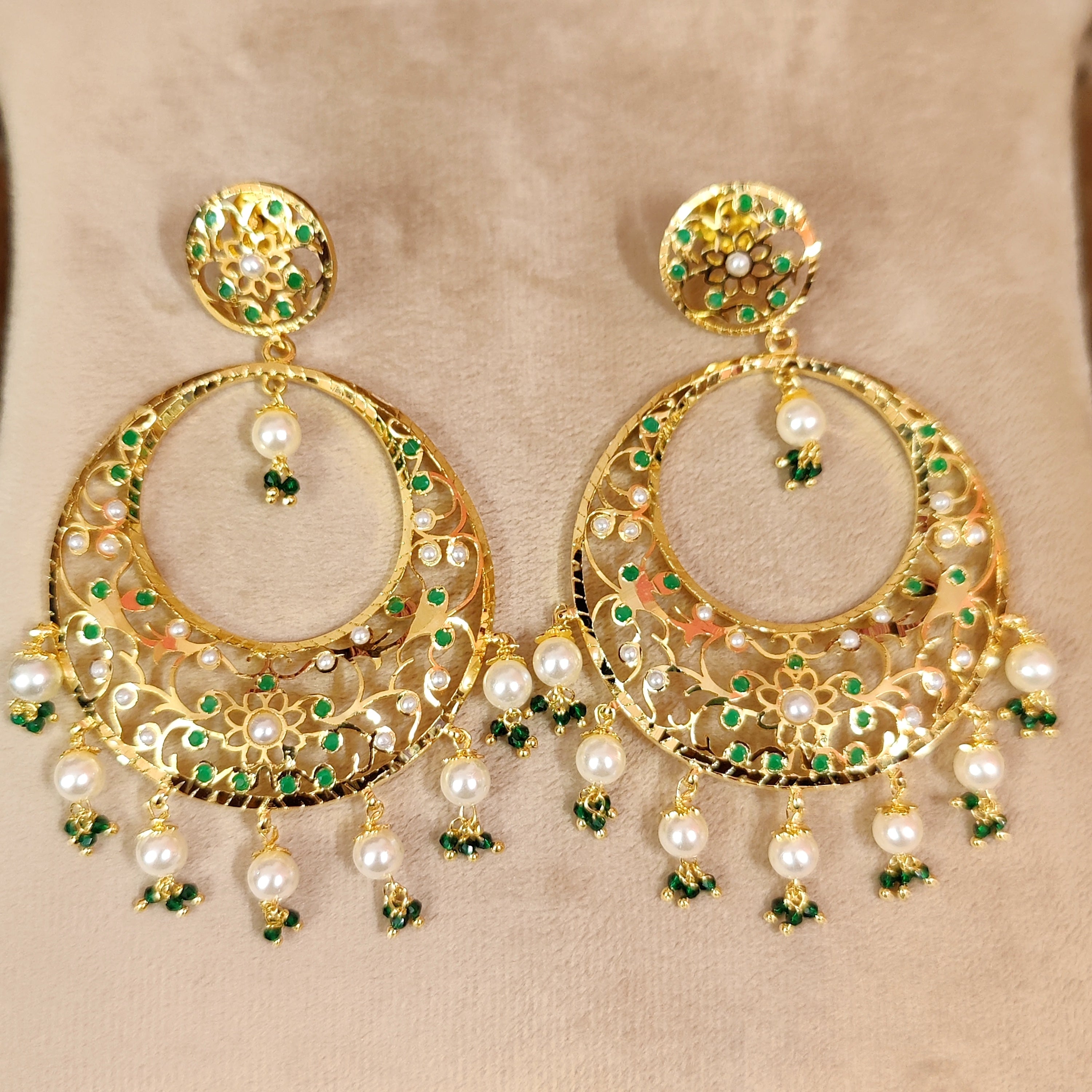 EMERALD & PEARL REAL GOLD LOOK CHANDBALI EARRINGS
