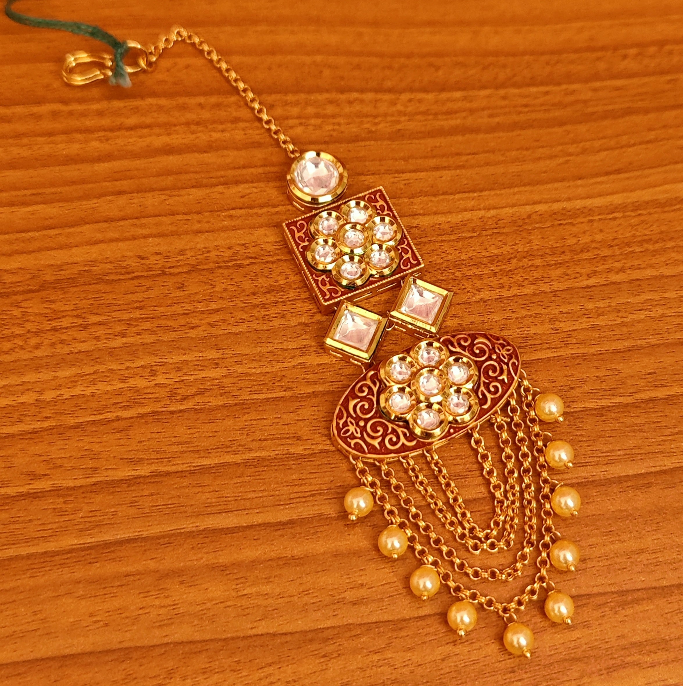 - Material: Brass Alloy, Kundan Meenakari, Pearls, Yellow Gold
