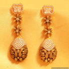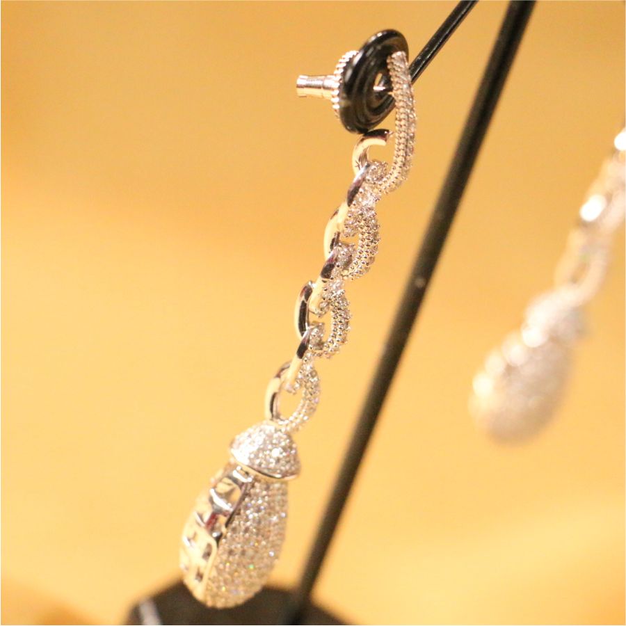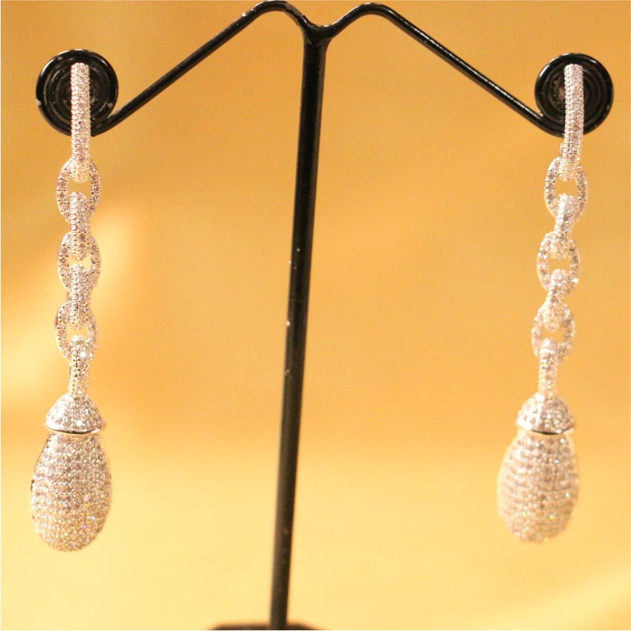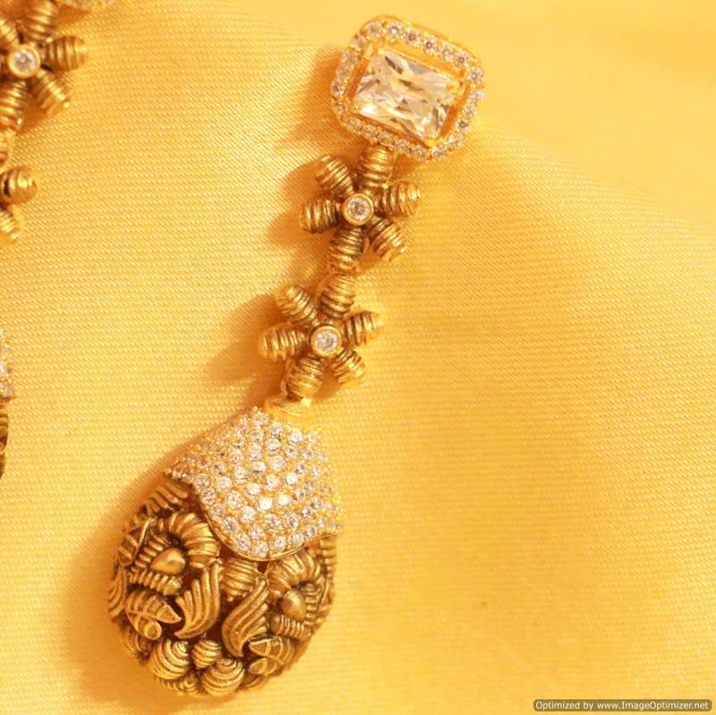 These beautiful earrings are handcrafted in silver alloy with imitation zircon & semi precious american diamonds of very fine quality. These earrings are coated with 18 kt gold polish which give them a unique look . An absolutely stunning piece to own and are very light in weight.