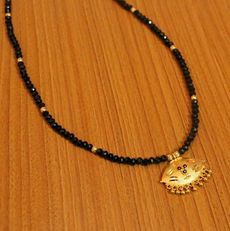 This beautiful mangalsutra is handcrafted in copper alloy with imitation polki work of very fine quality . This mangalsutra is coated with 18 kt gold polish which give them a unique look . An absolutely stunning piece to own and are very light in weight.