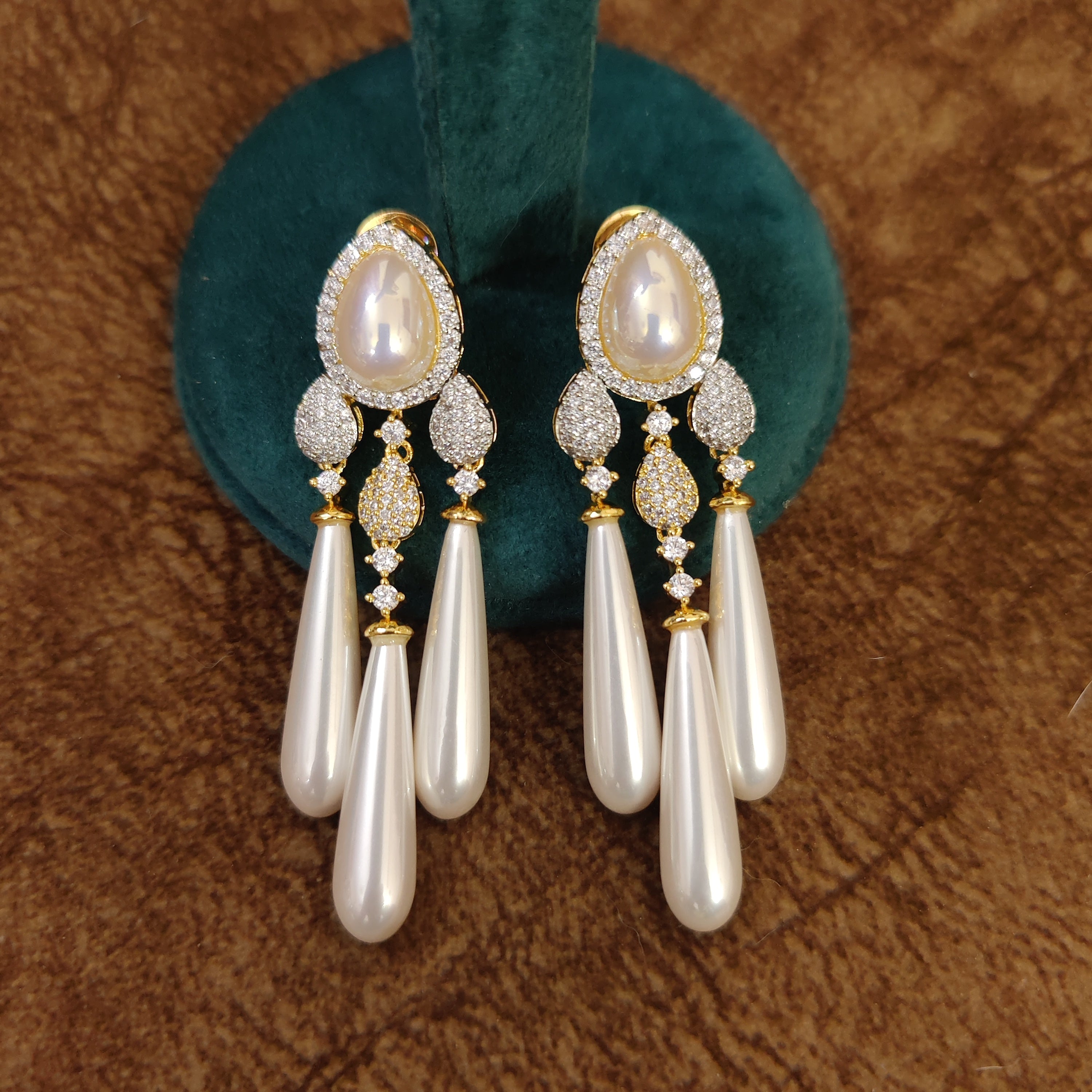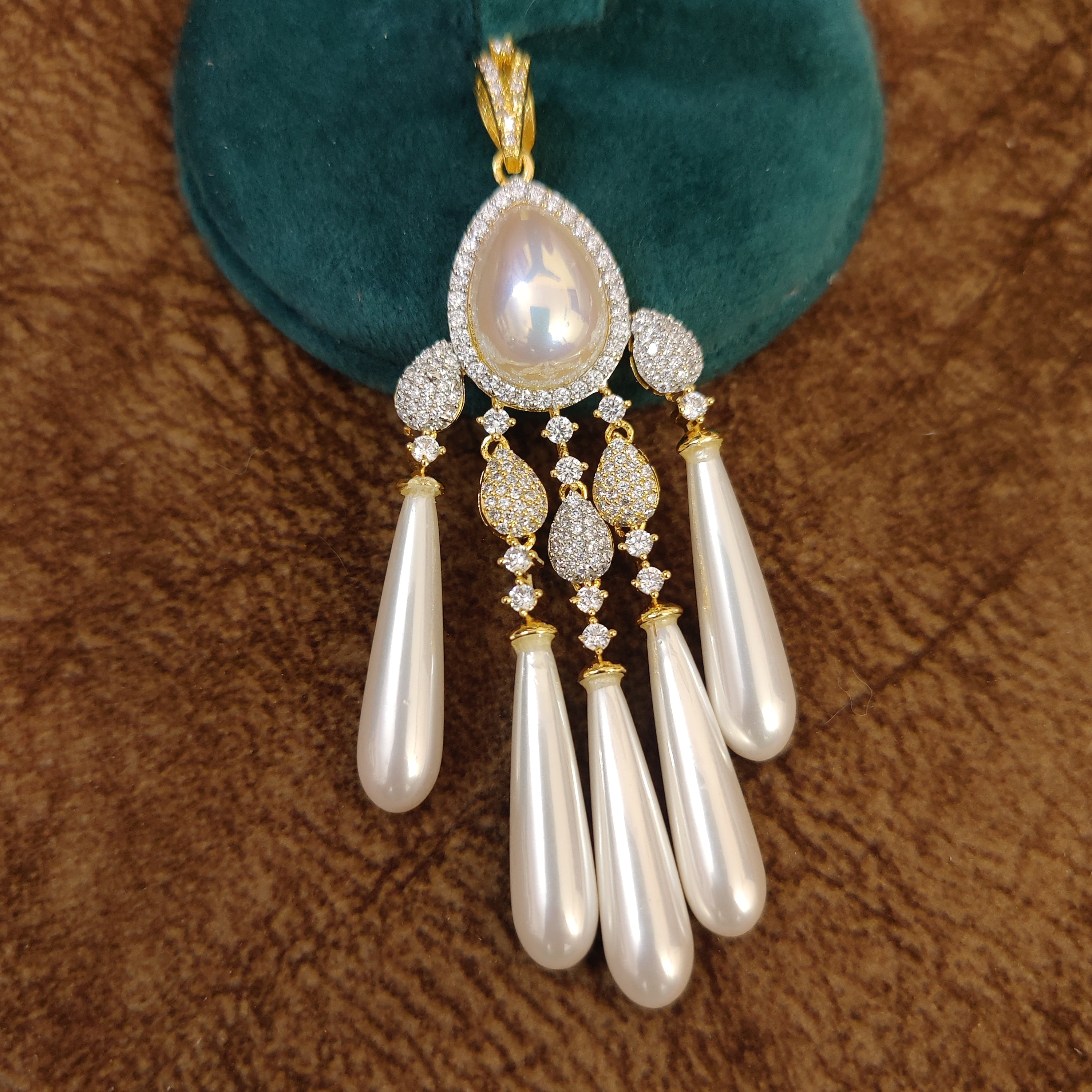 GOLD PLATED DESIGNER DANGLING PEARL PENDANT SET