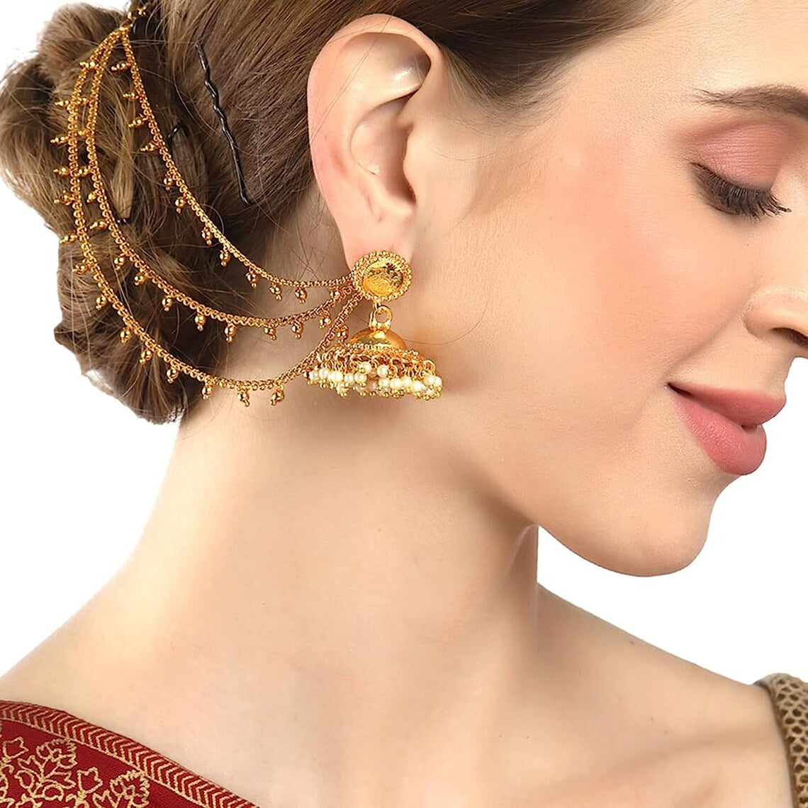 GOLD PLATED ETHNIC BAHUBALI EAR CHAIN