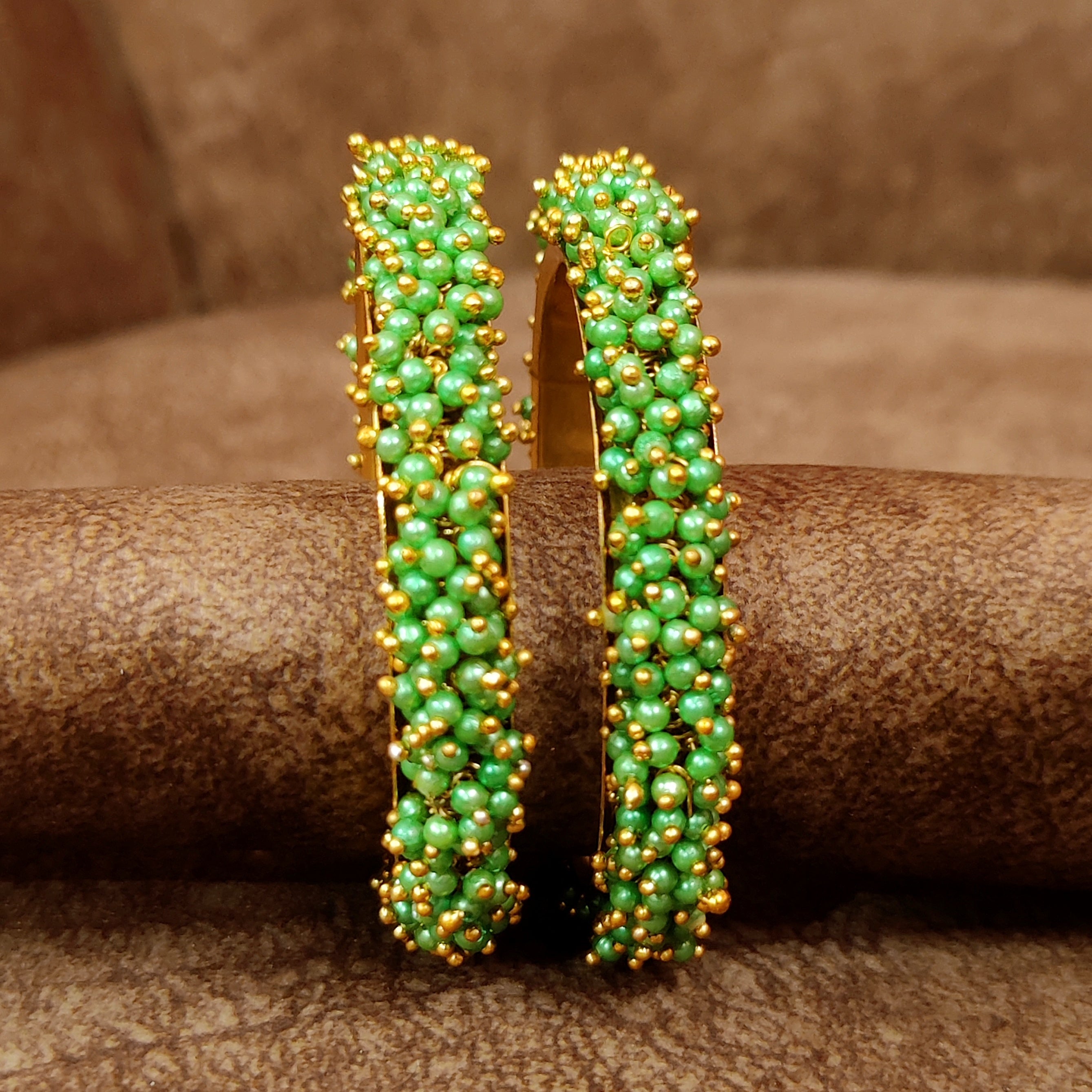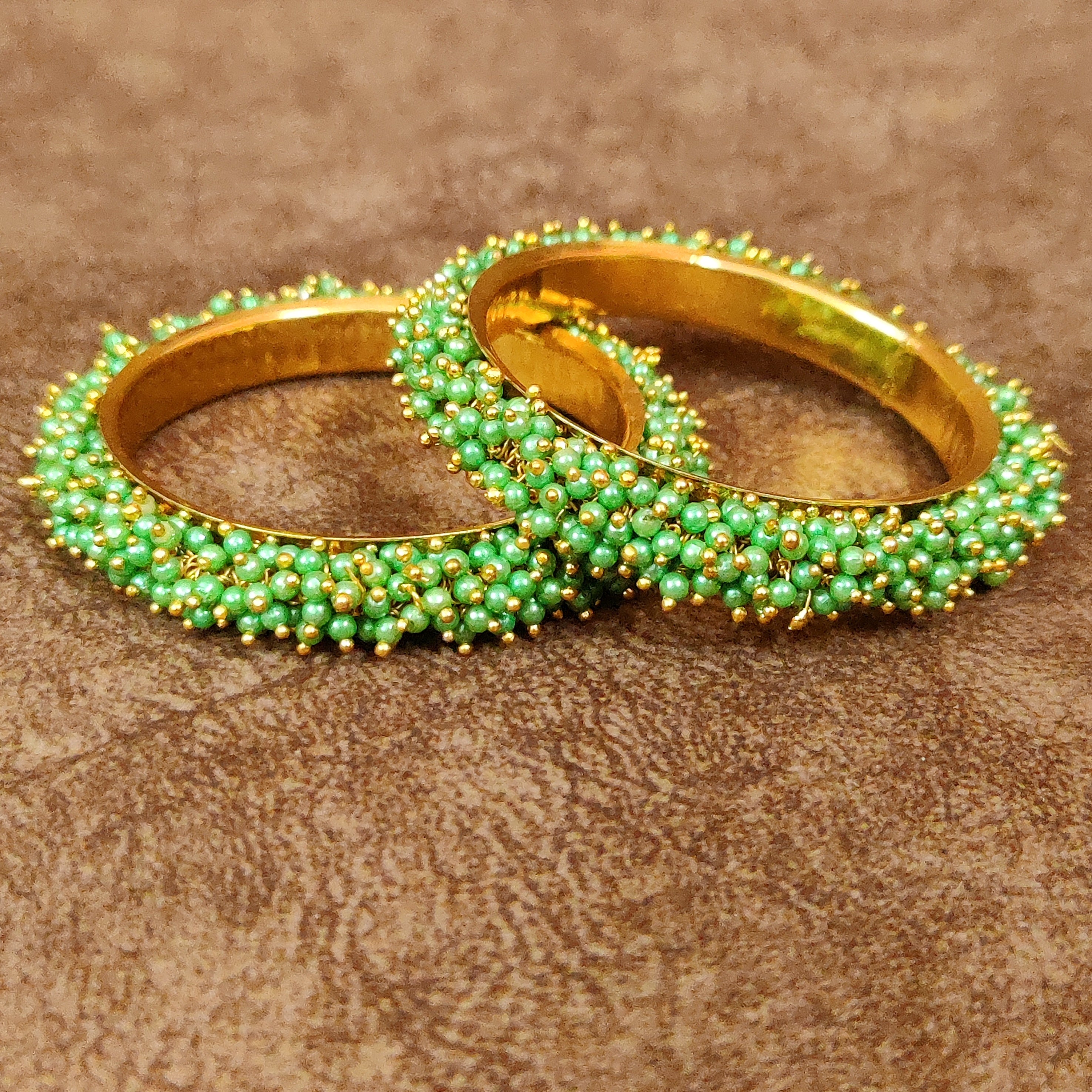 GOLD PLATED GREEN PEARL GAJRA BANGLES