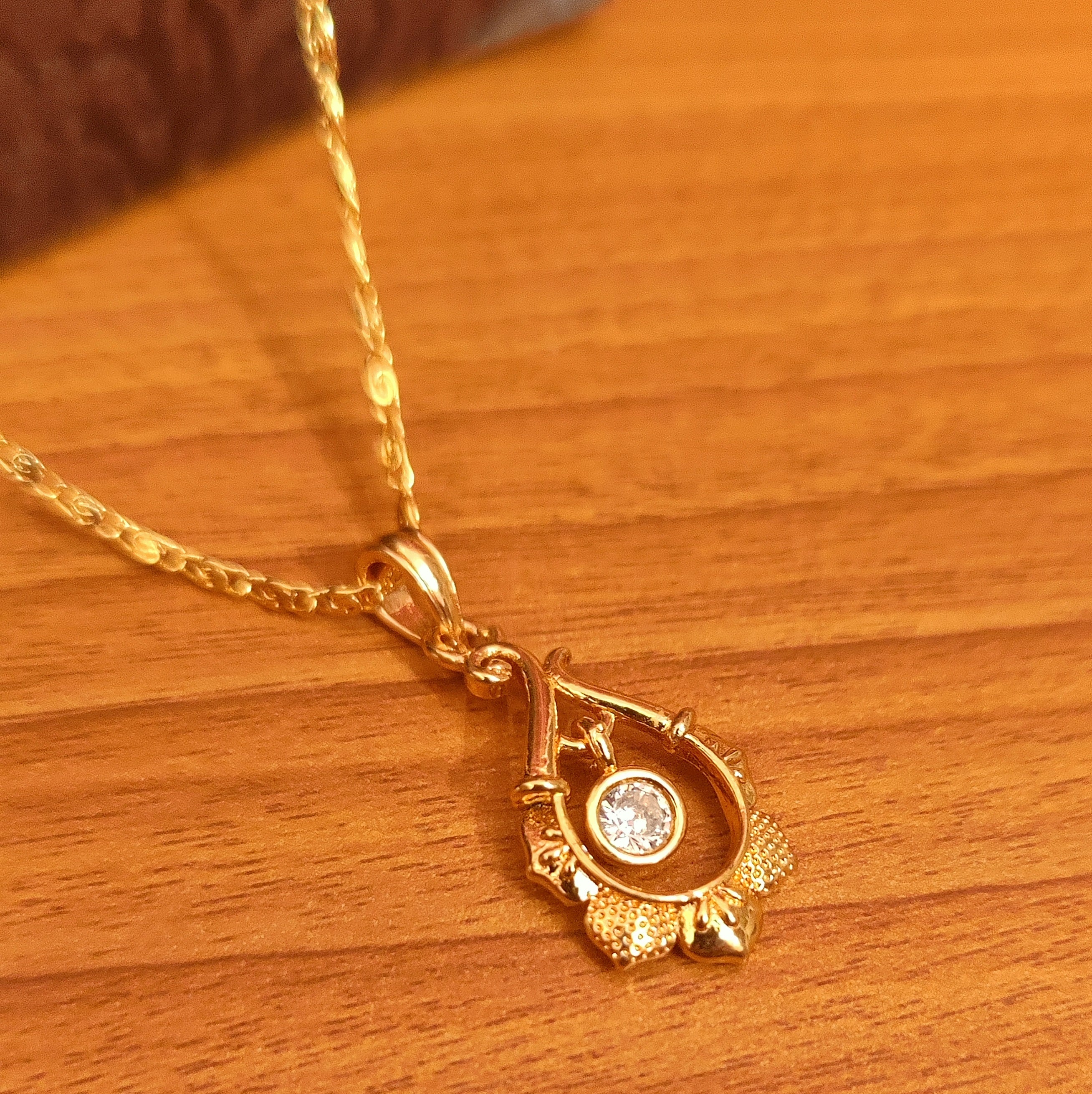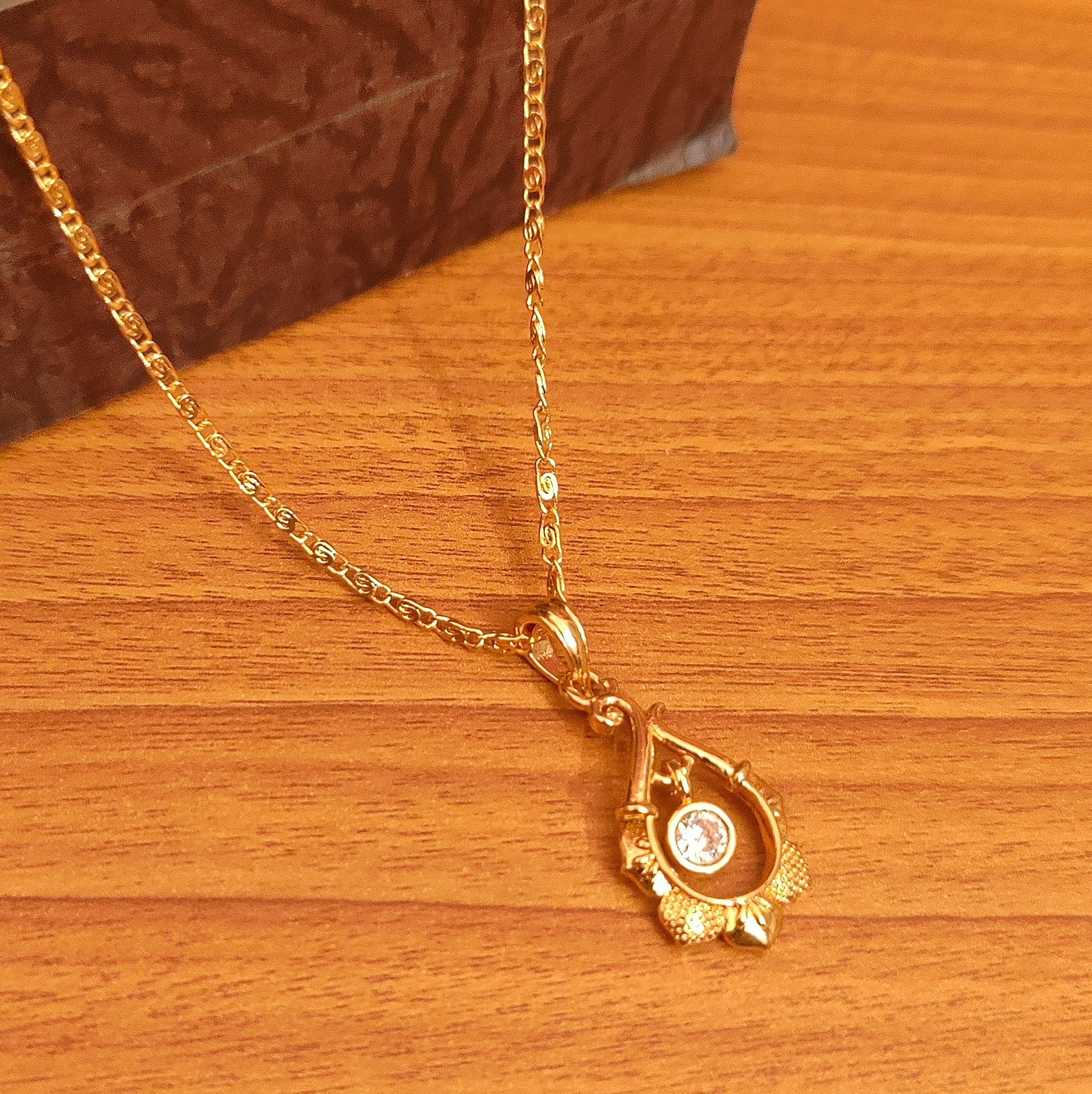 This pear shaped cz pattern pendant is handcrafted in brass alloy with fine 18kt gold rhodium plating which gives the pendant a real gold look . An absolutely stunning piece to own and is light in weight.
