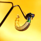 These beautiful peacock Earrings are handcrafted in silver alloy with imitation american diamond and semi precious colourful stones . These earrings are coated with 18 kt gold polish which give them a unique look . An absolutely stunning piece to own and are very light in weight.
