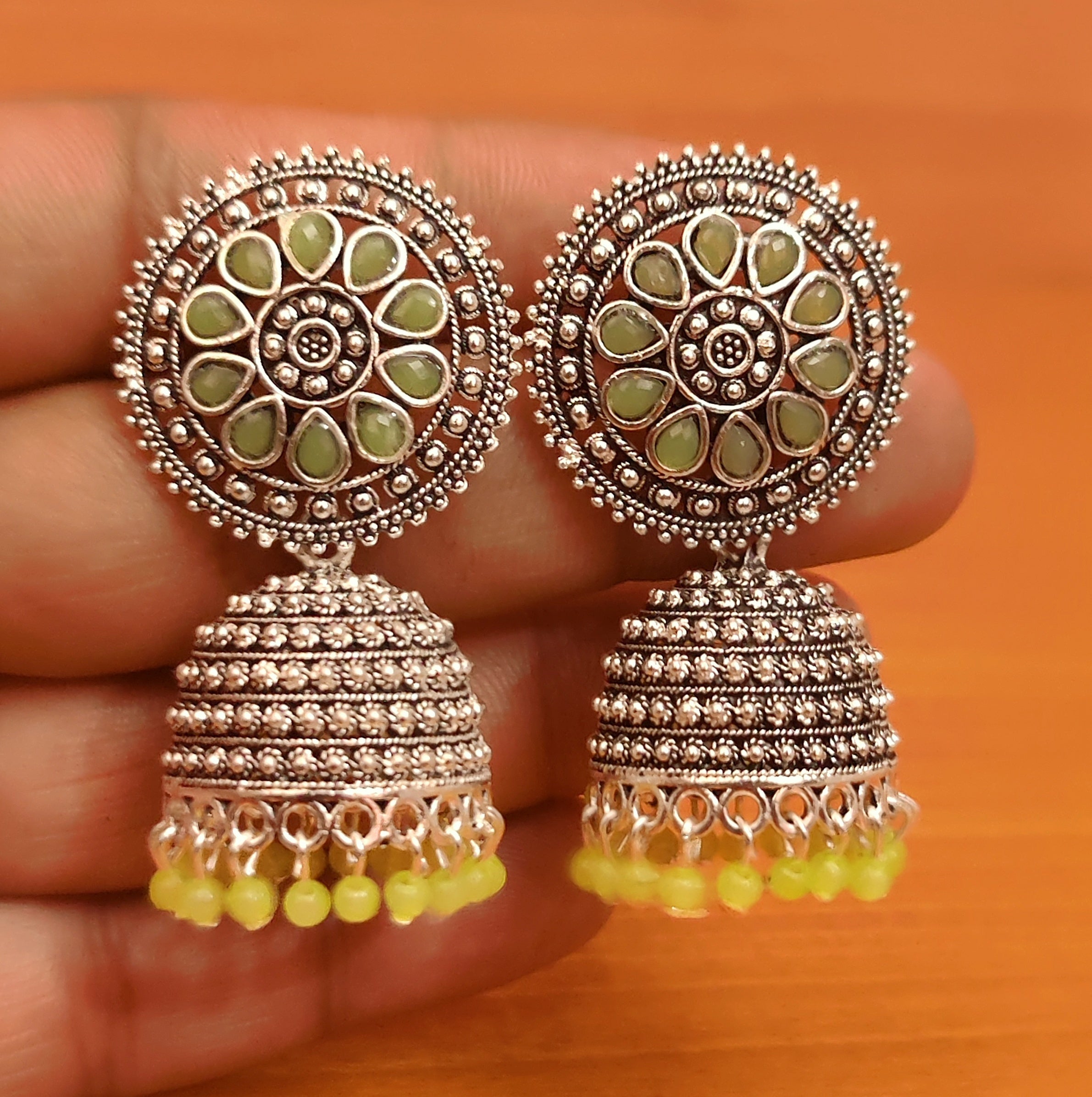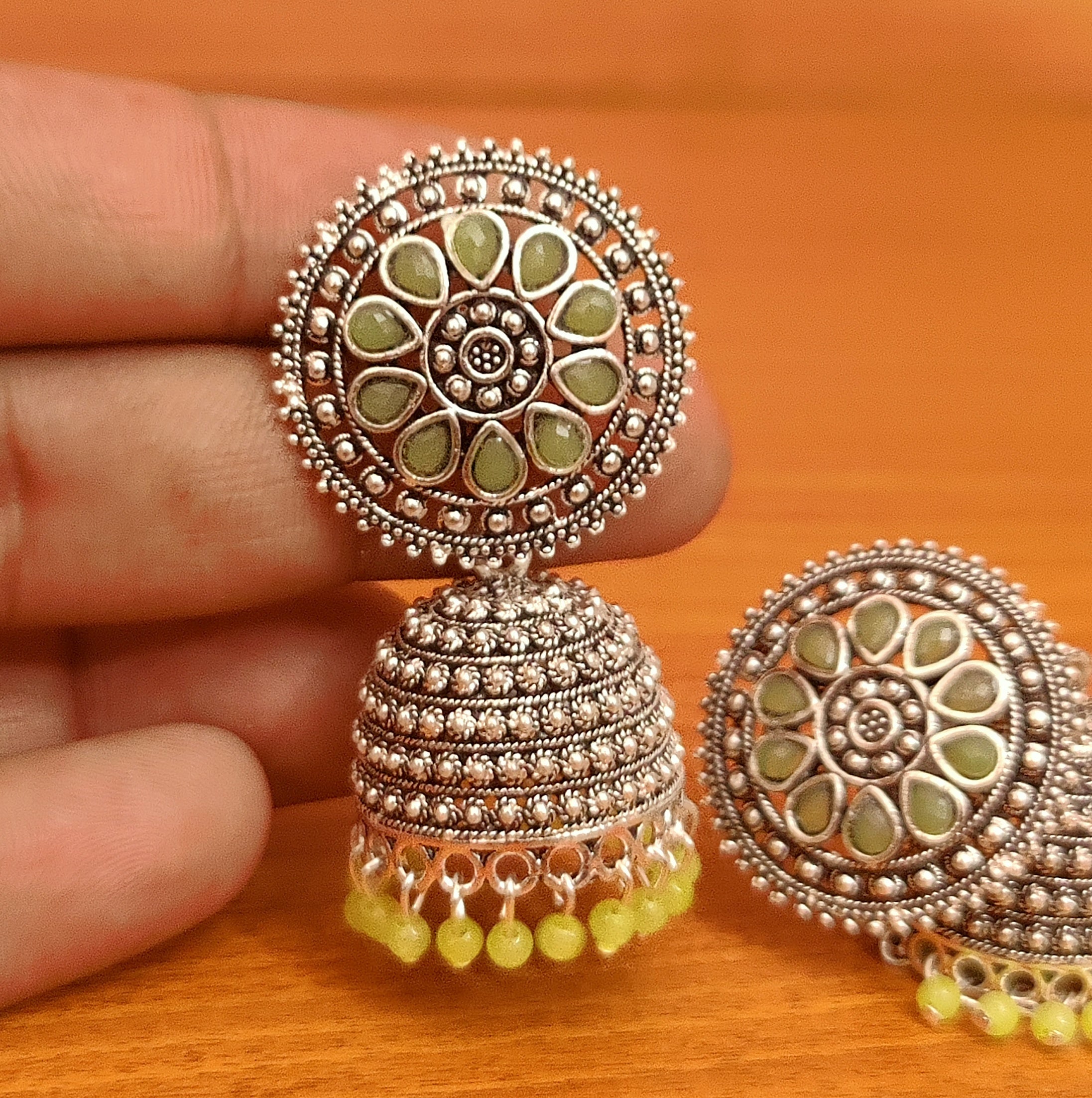 GREEN COLOUR GERMAN SILVER LOOK JHUMKA'S