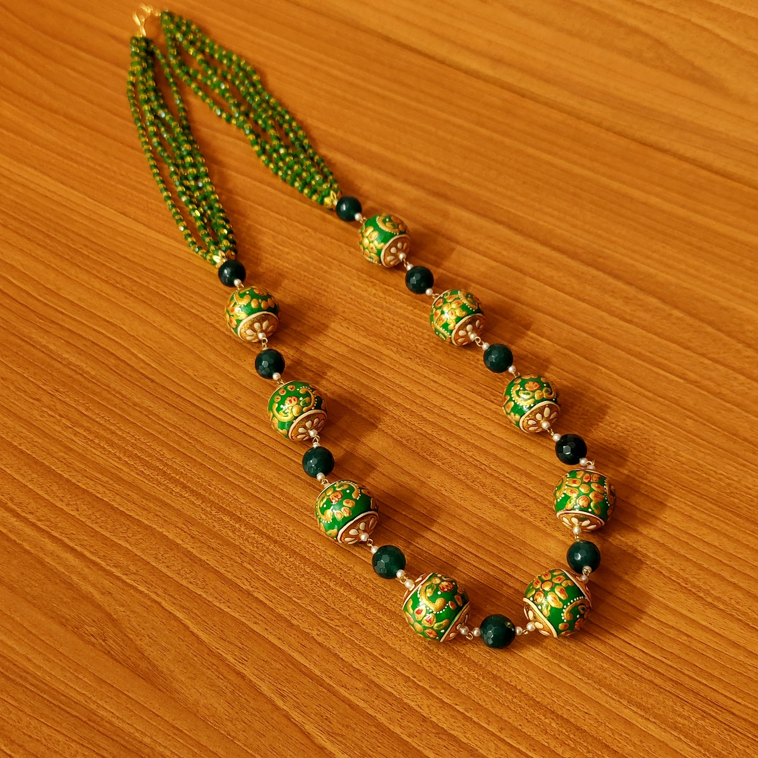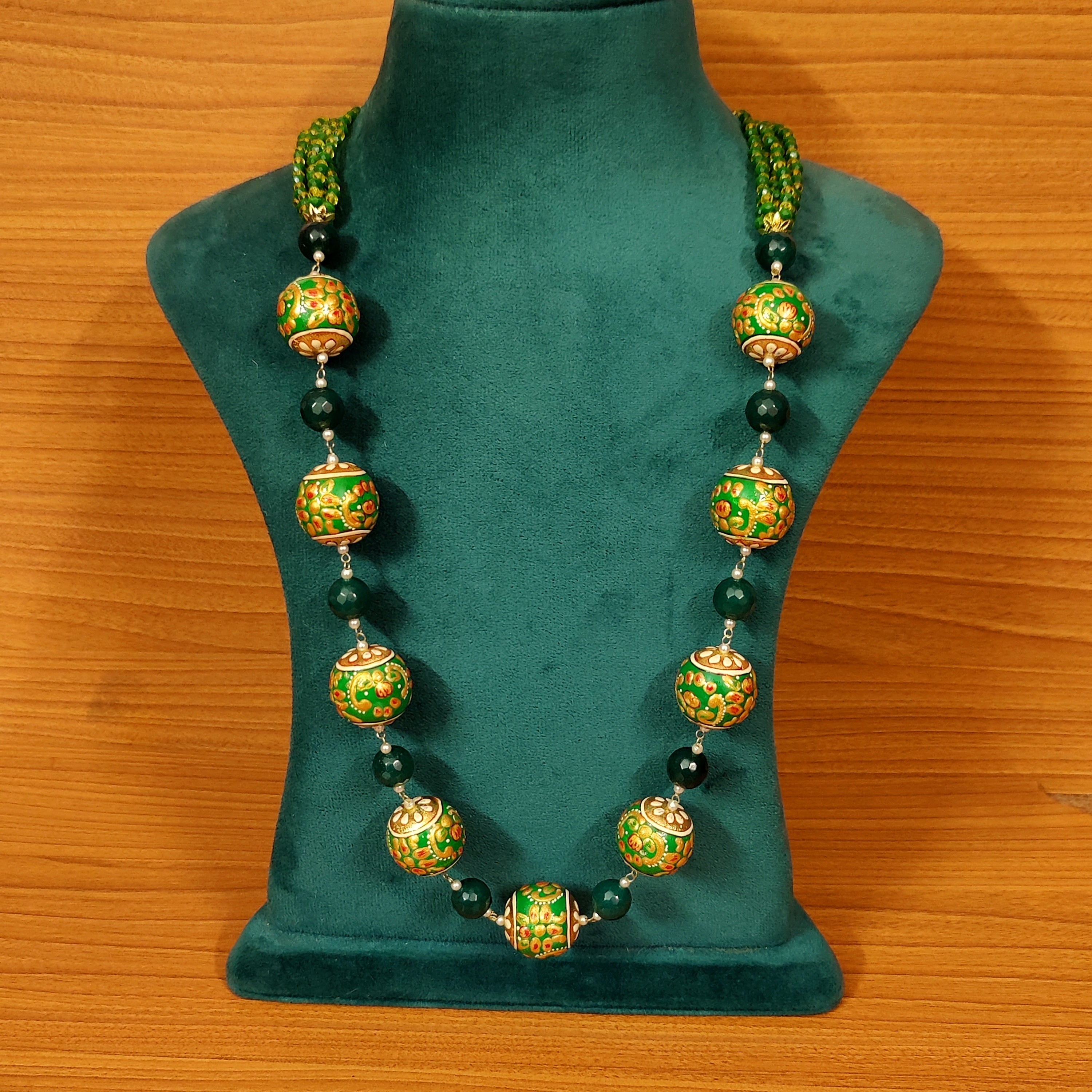 GREEN MEENAKARI BEADS & SEMI PRECIOUS STONE NECKLACE