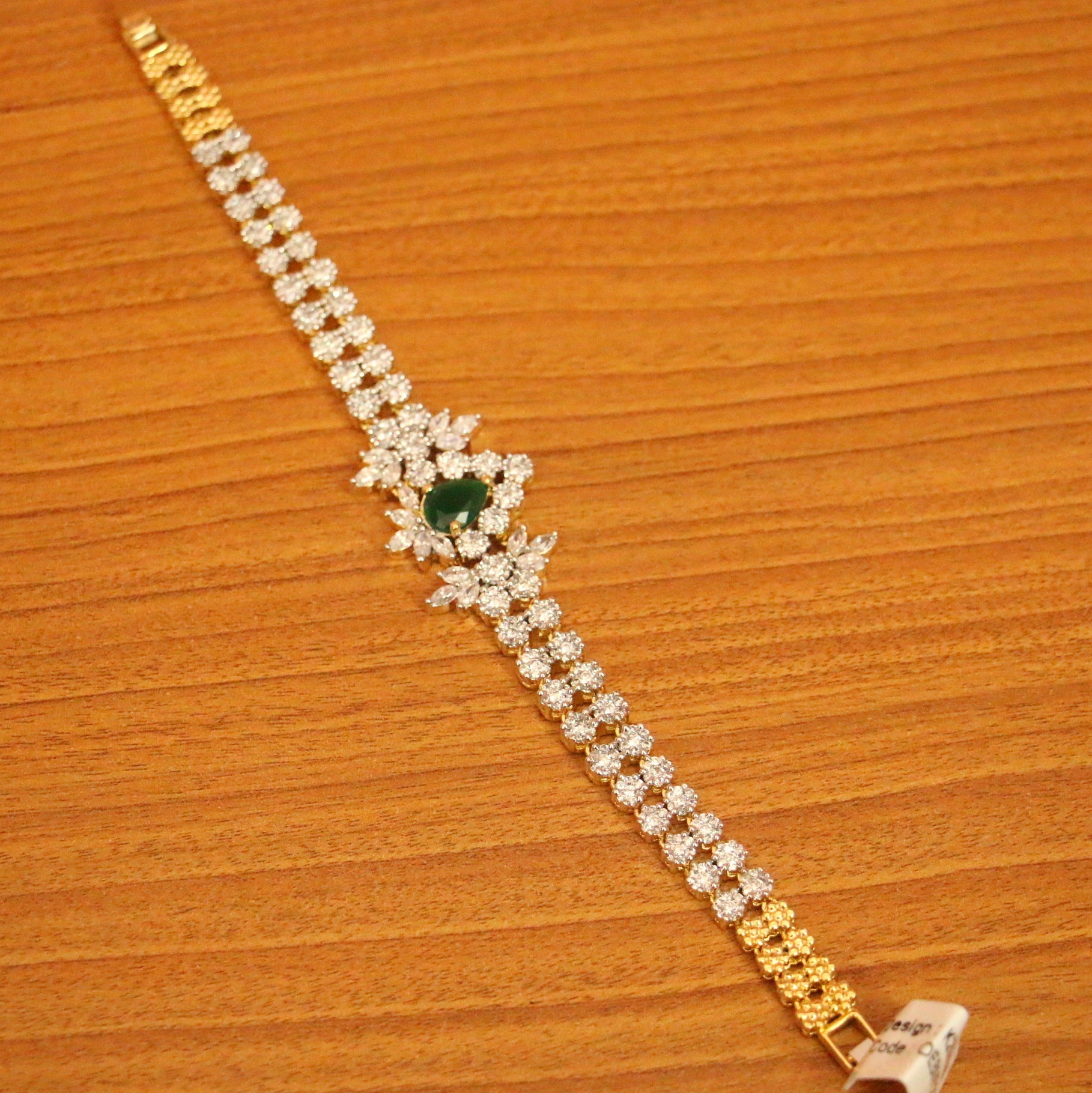 "These beautiful Bracelets are handcrafted in silver alloy with green onyx & imitation american diamond of very fine quality . These bracelets are coated with 18 kt gold polish which give them a unique look .