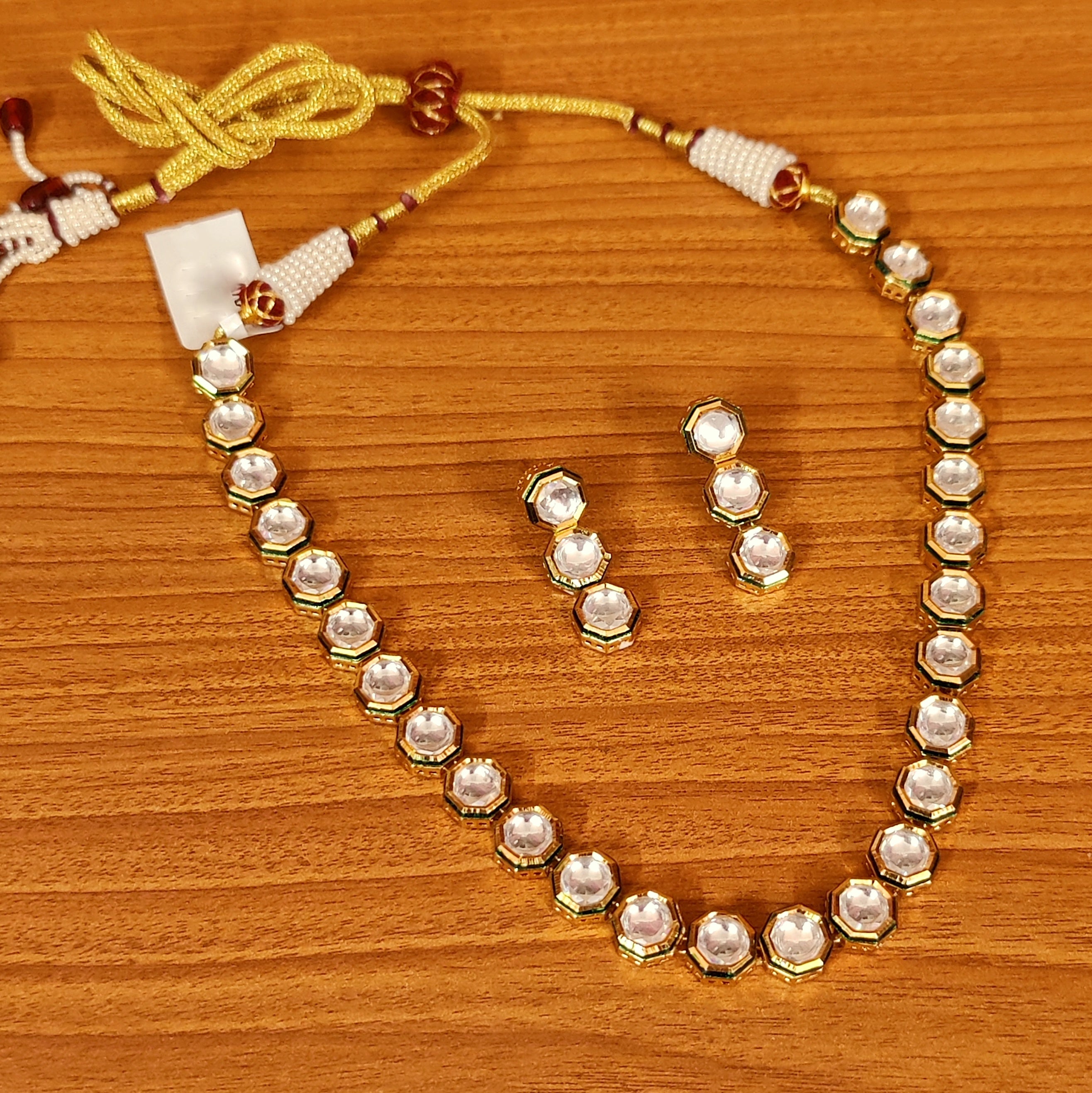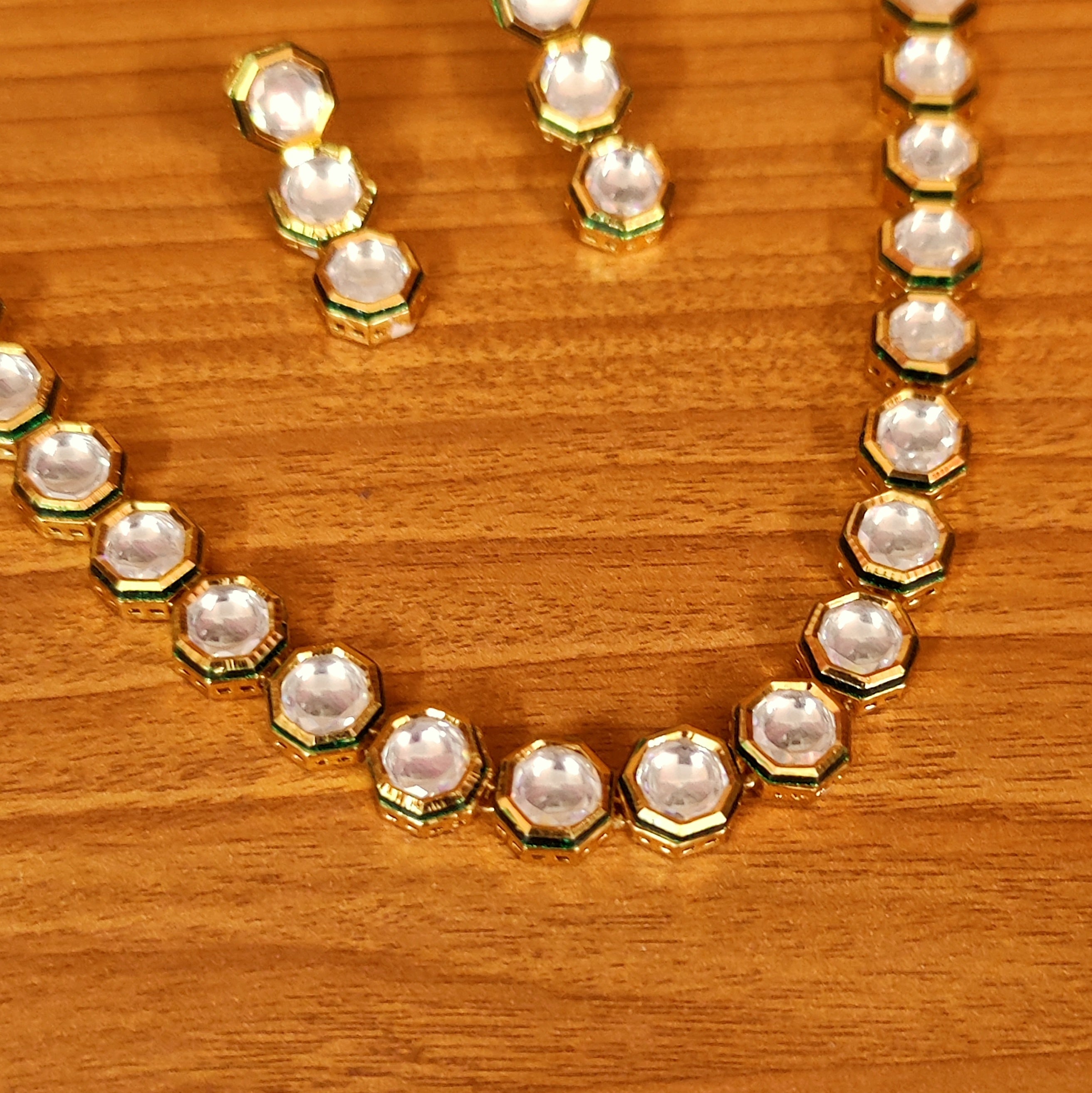 KUNDAN MEENAKARI HEXAGON CUT SINGLE LINE NECKLACE SET