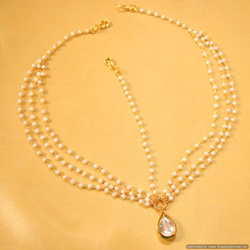 This kundan look mathapatti is handcrafted in silver alloy with imitation pearls & kundan polki stone of very fine quality . This mathapatti is coated with gold rhodium plating as done on the real jewellery . The design itself looks very real and is perfect for wedding wear.