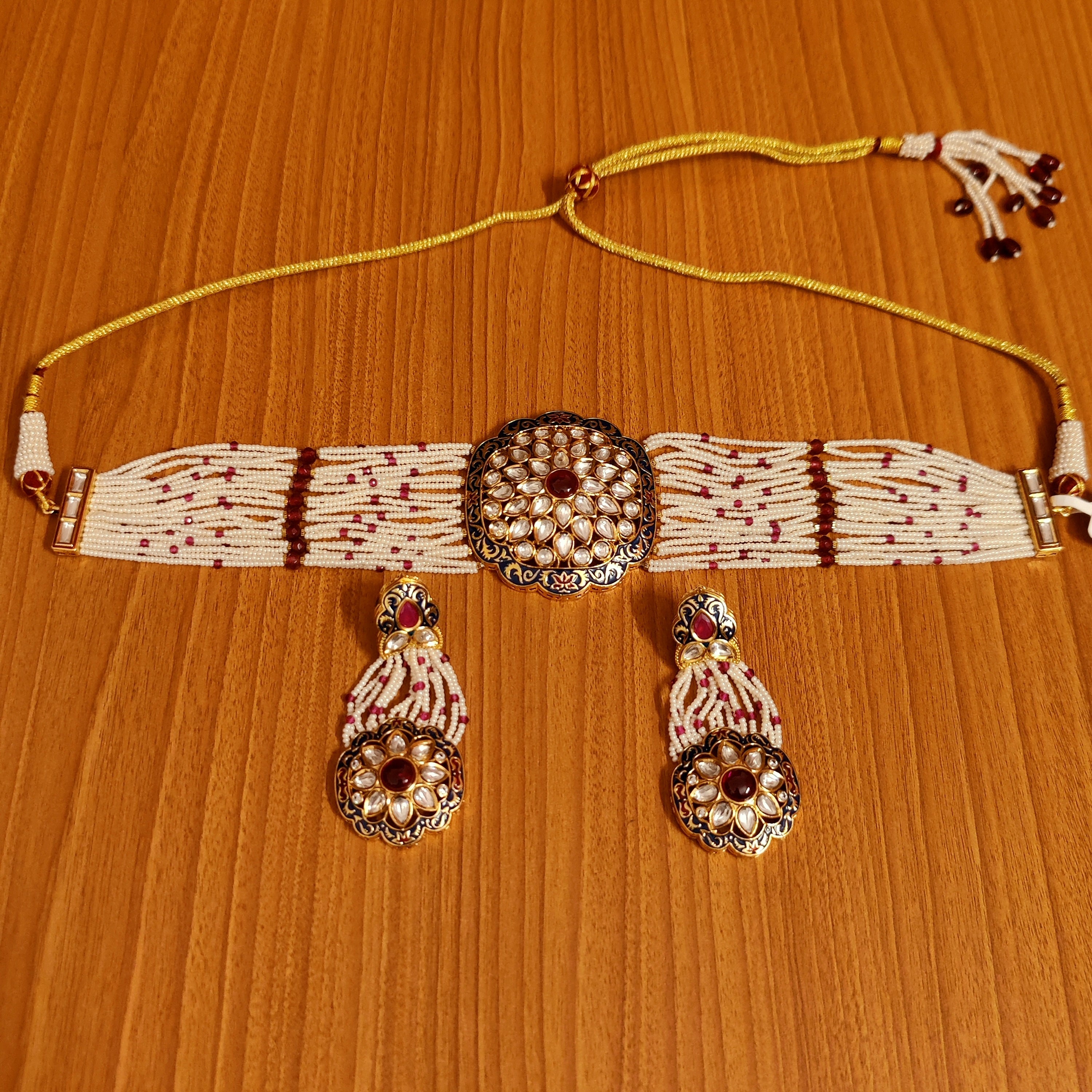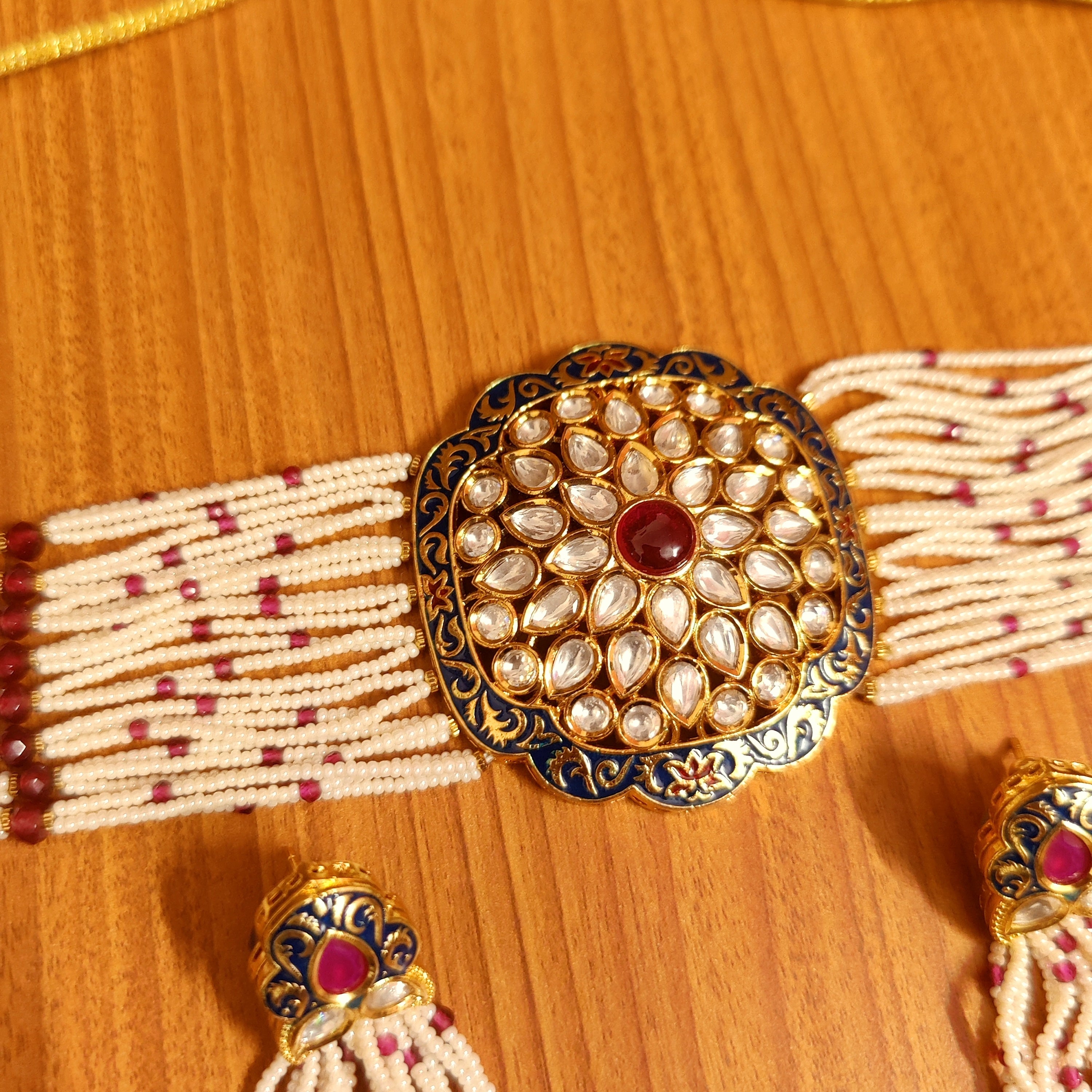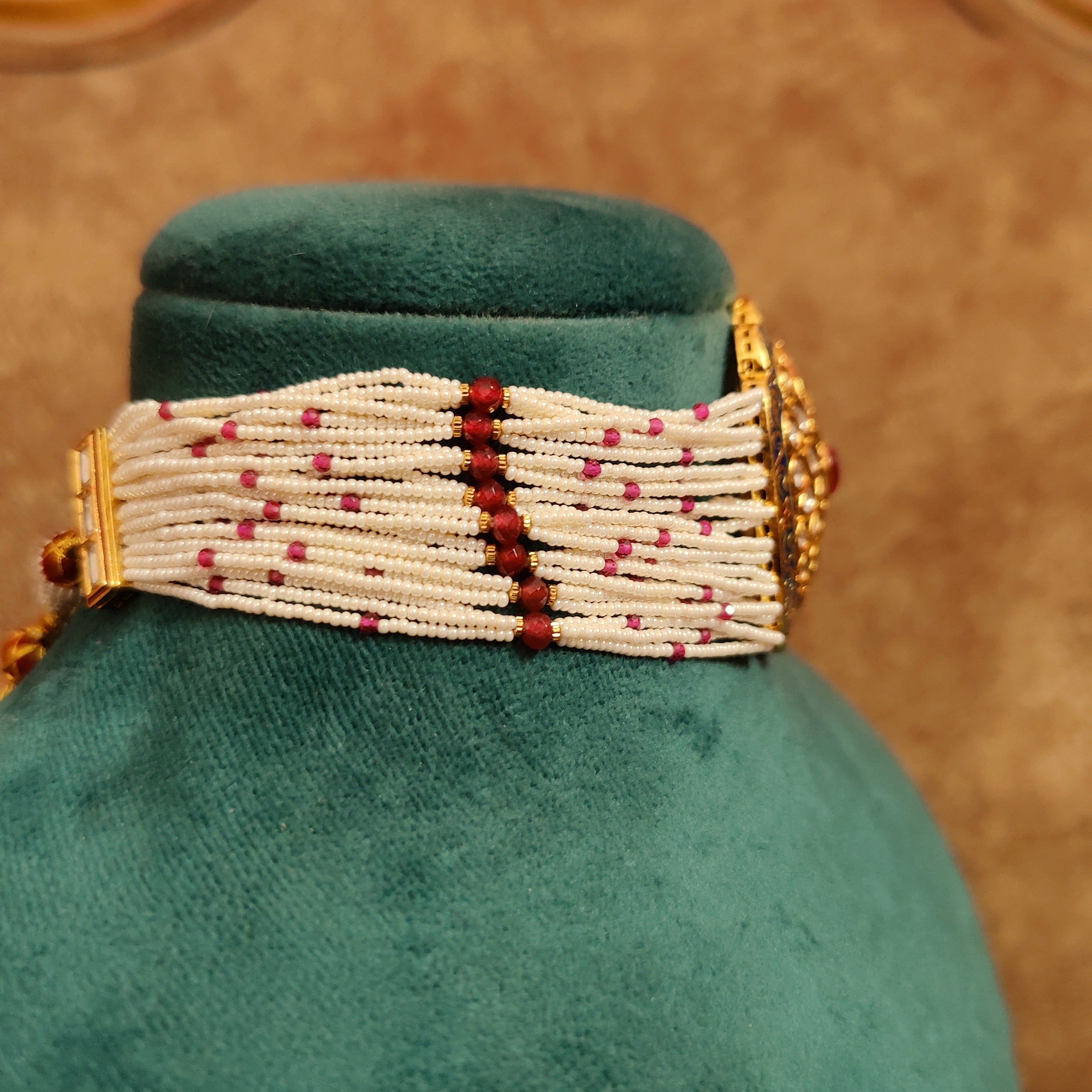 KUNDAN POLKI & PEARL RUBY CHOKER NECKLACE SET