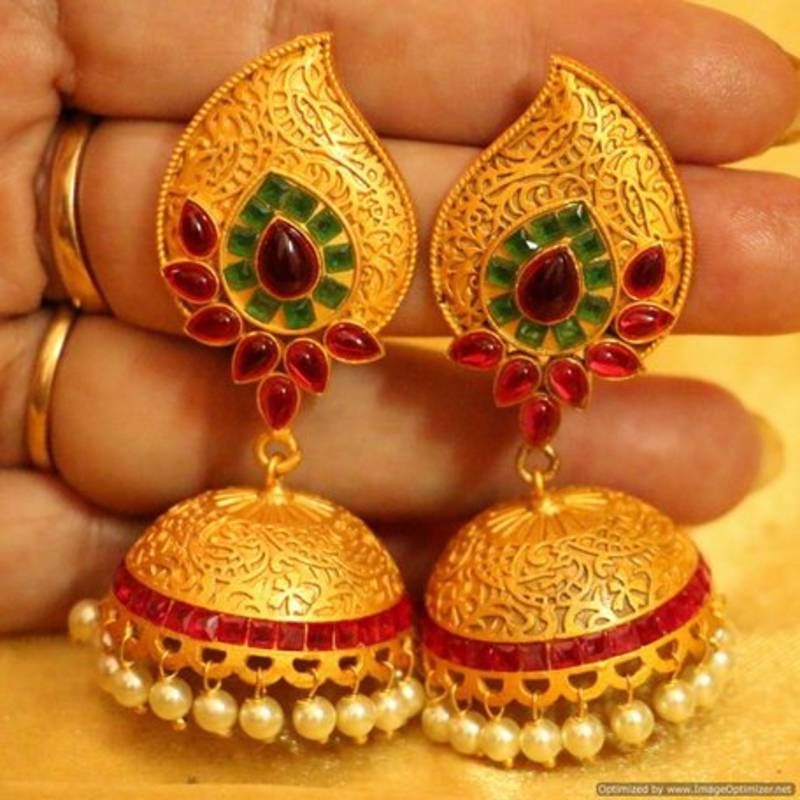 These beautiful earrings are handcrafted in copper alloy with imitation ruby and polki with matt finished work of very fine quality. These earrings are coated with 18 kt gold polish which give them a unique look . An absolutely stunning piece to own and are very light in weight.