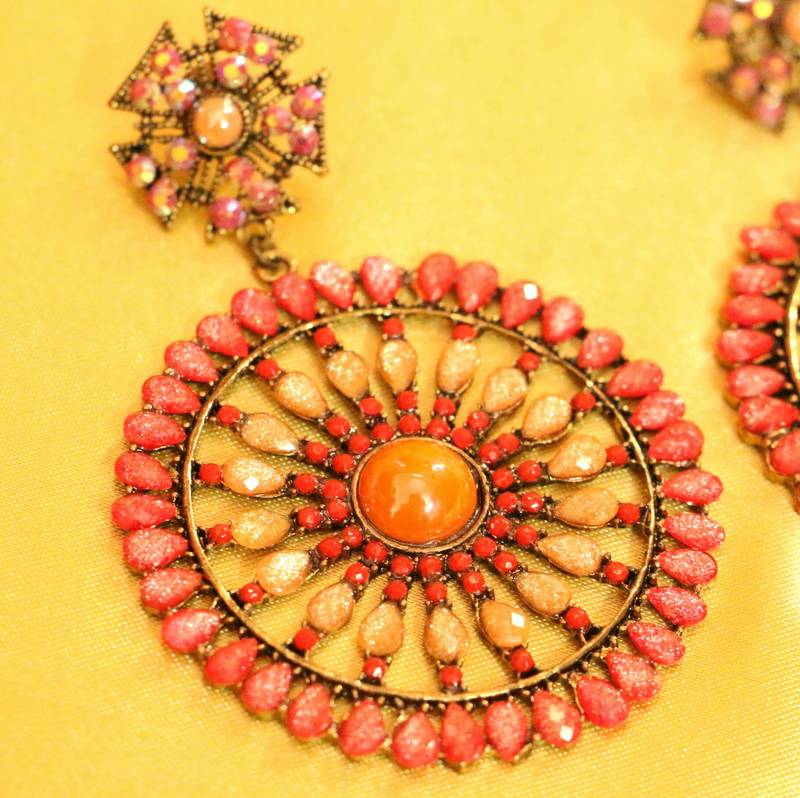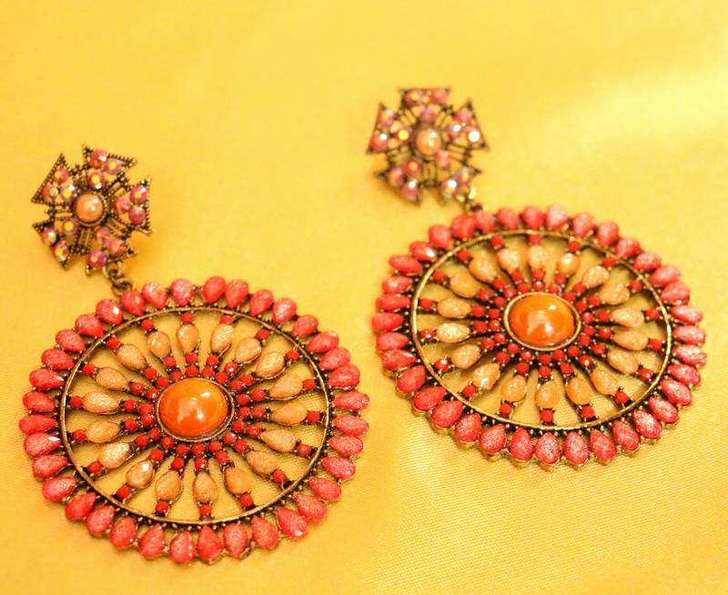 These beautiful earrings are handcrafted in brass alloy with imitation crystal work of very fine quality. These earrings are coated with antique gold polish which give them a unique look . An absolutely stunning piece to own and are very light in weight.