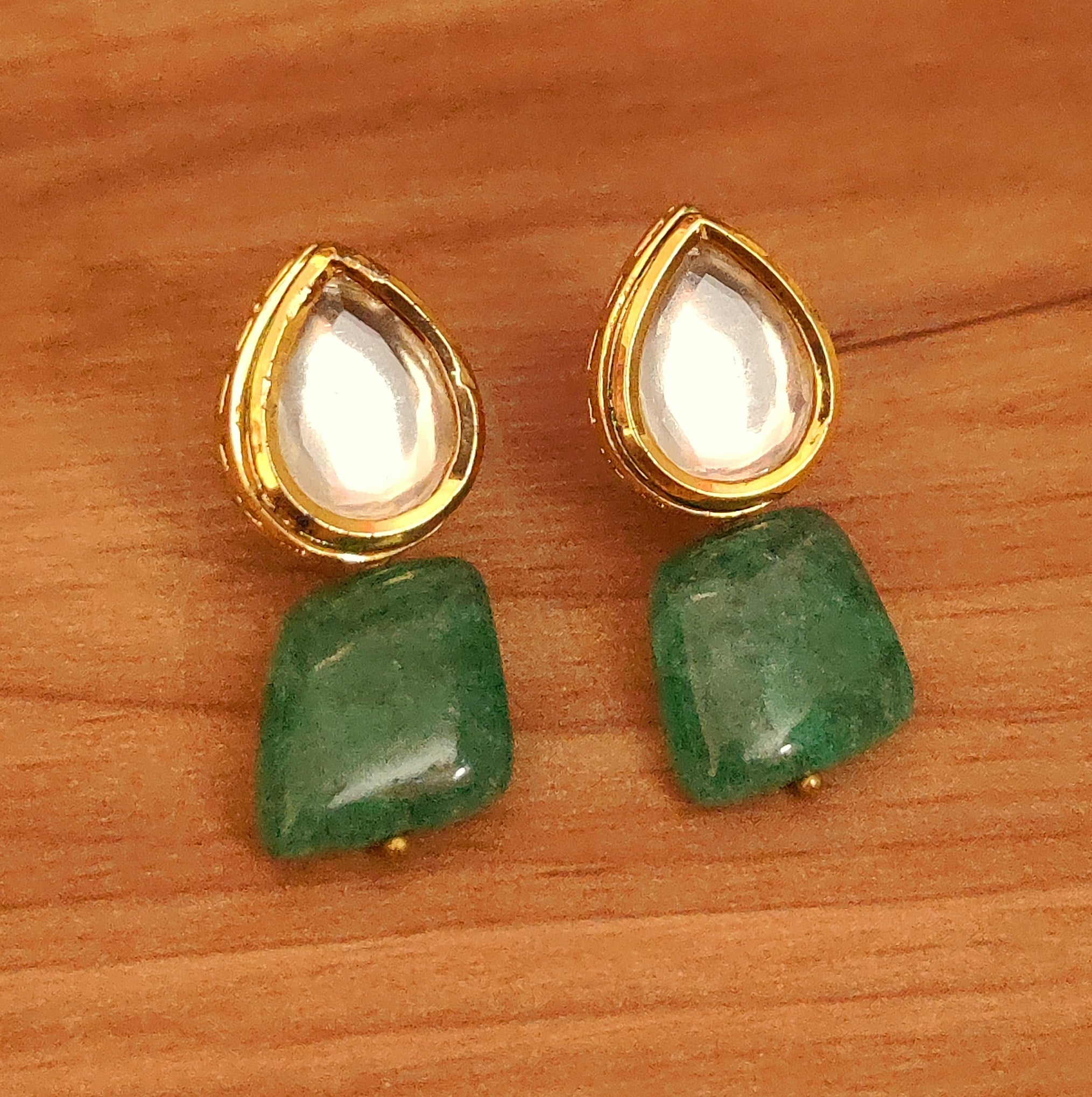 PEAR SHAPED KUNDAN LOOK EMERALD COLOUR STUDS