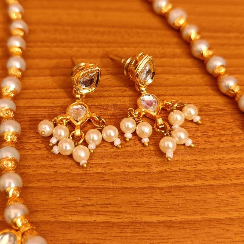 PEARL GOLD PLATED CAP KUNDAN LOOK NECKLACE SET