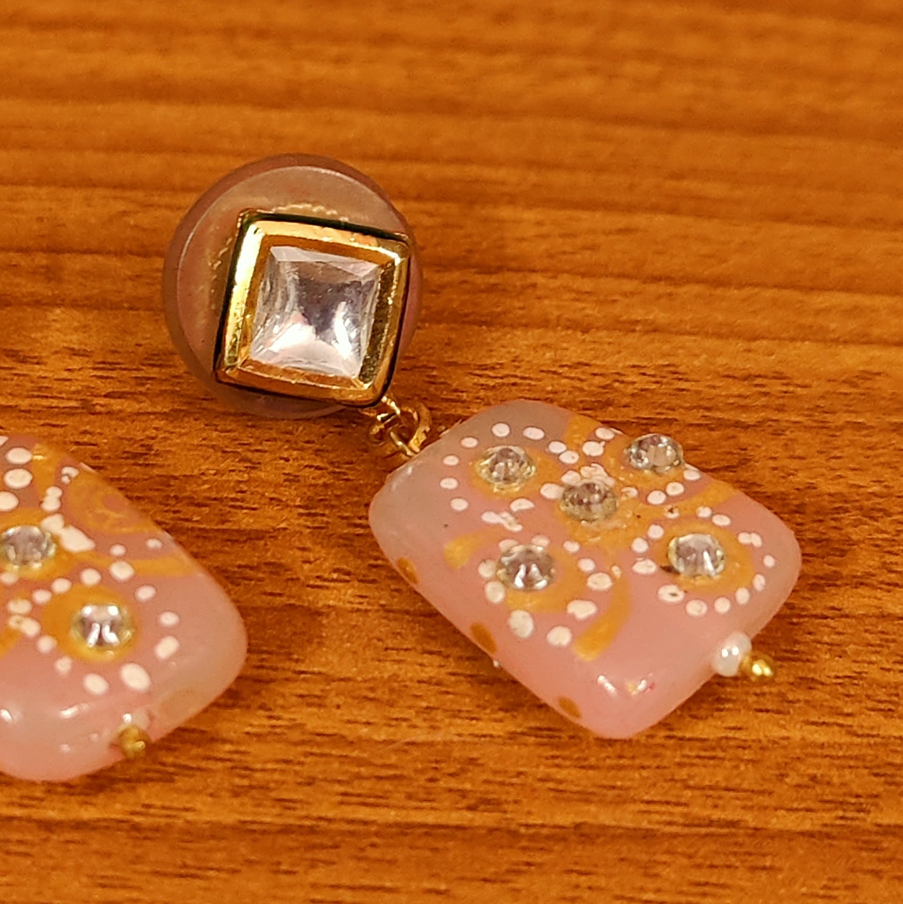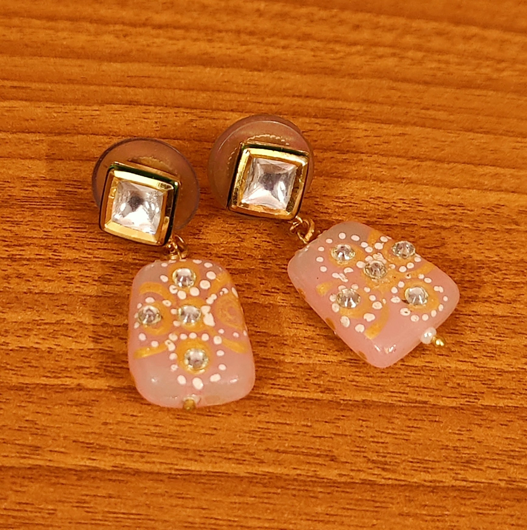 These kundan studs are handcrafted in brass alloy with imitation kundan polki & pink colour hand paindted quartz stones of fine quality. These artistic yet modern earrings are plated with fine nickle free gold rhodium to avoid any allergies to the skin.