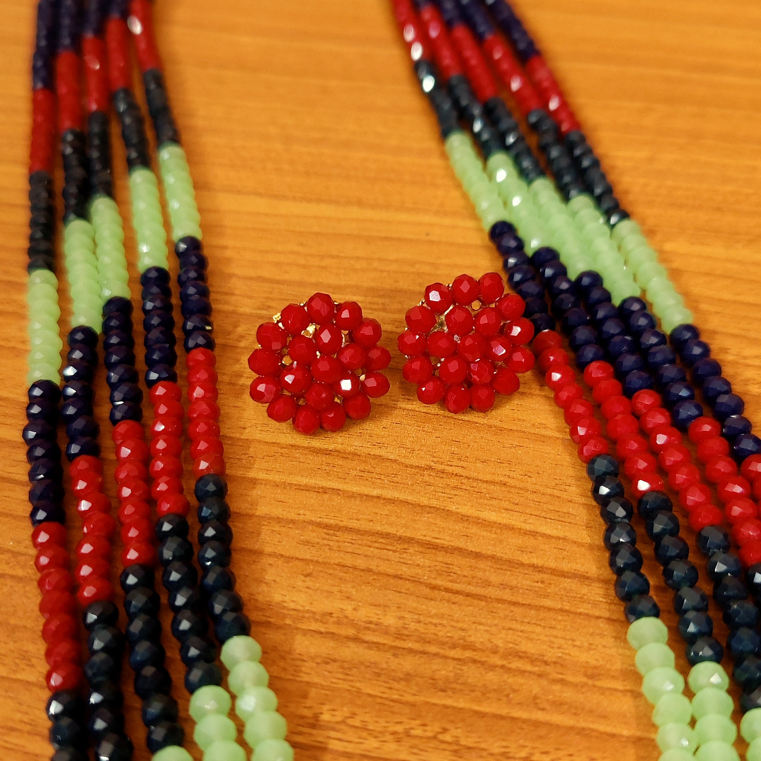 RED & BLACK CRYSTAL BEAD NECKLACE SET WITH RED STUDS
