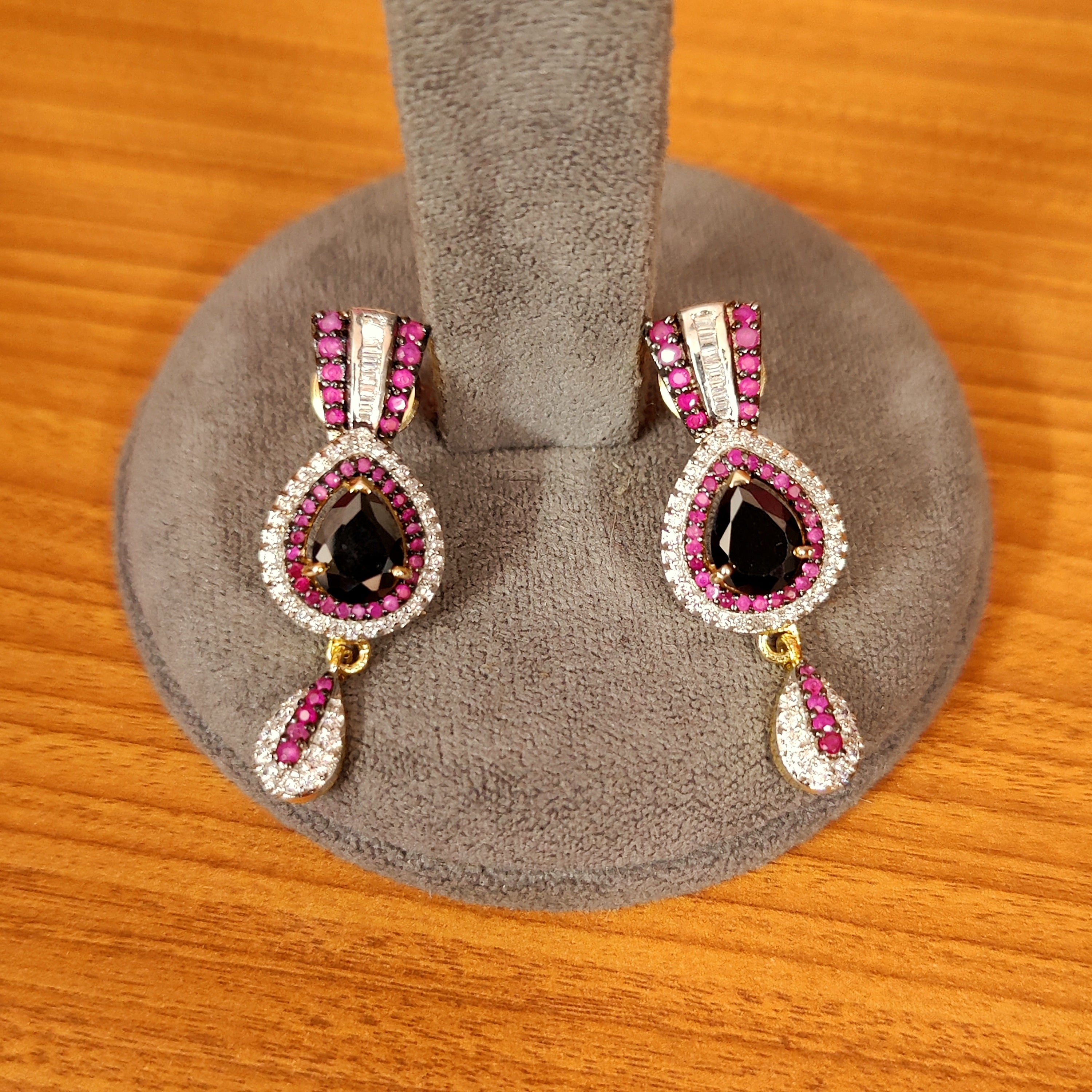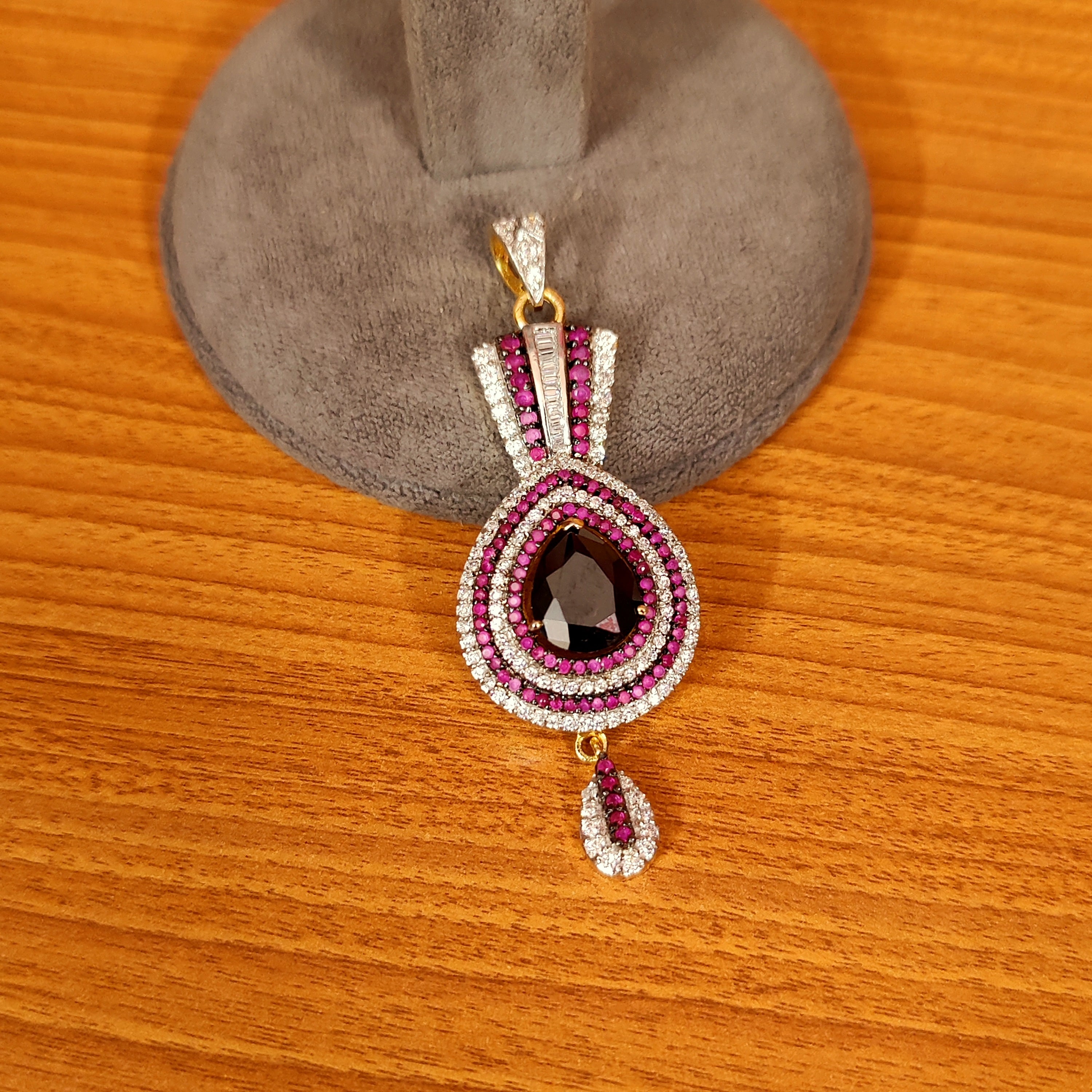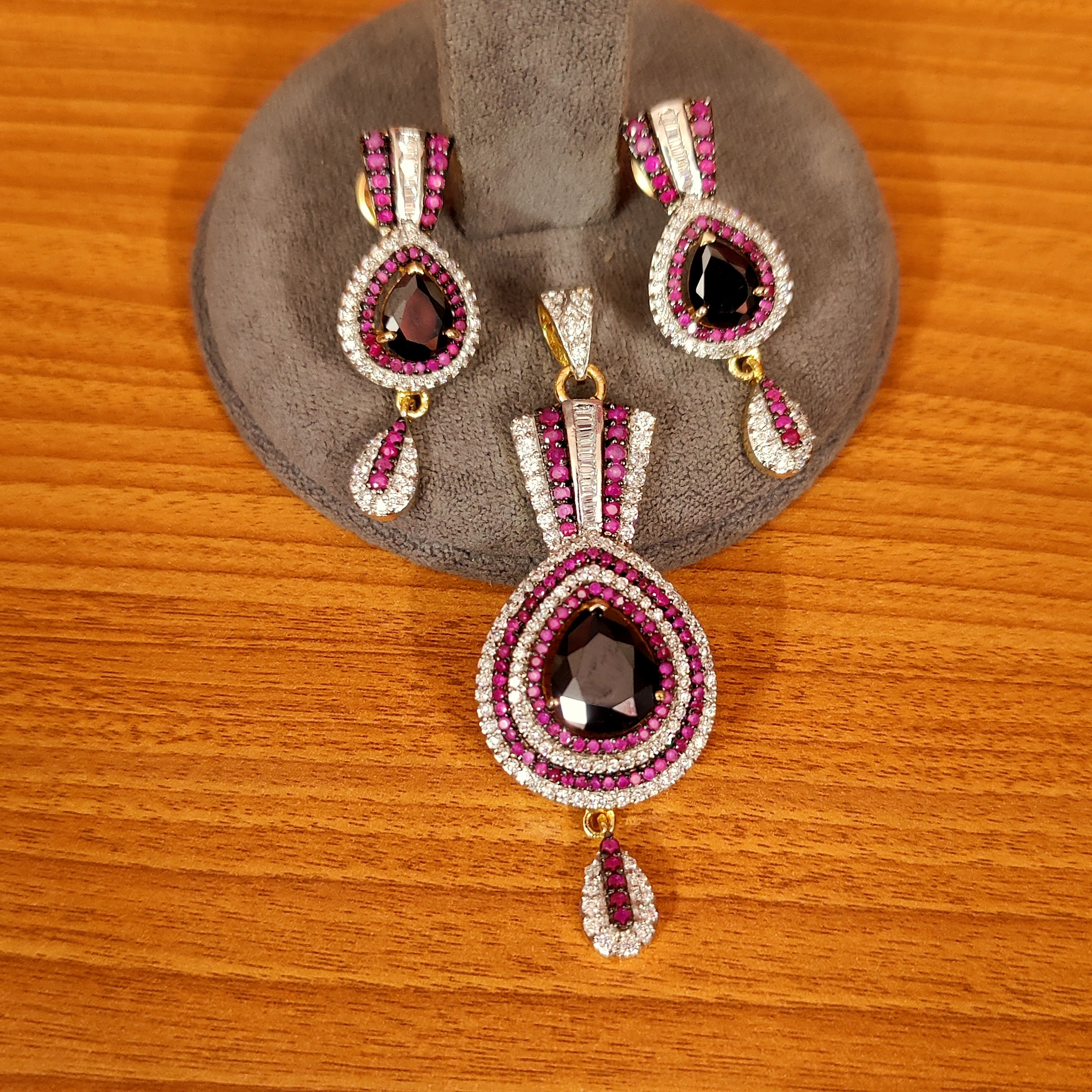 RUBY & BLACK COLOUR CZ STUDDED PENDANT SET