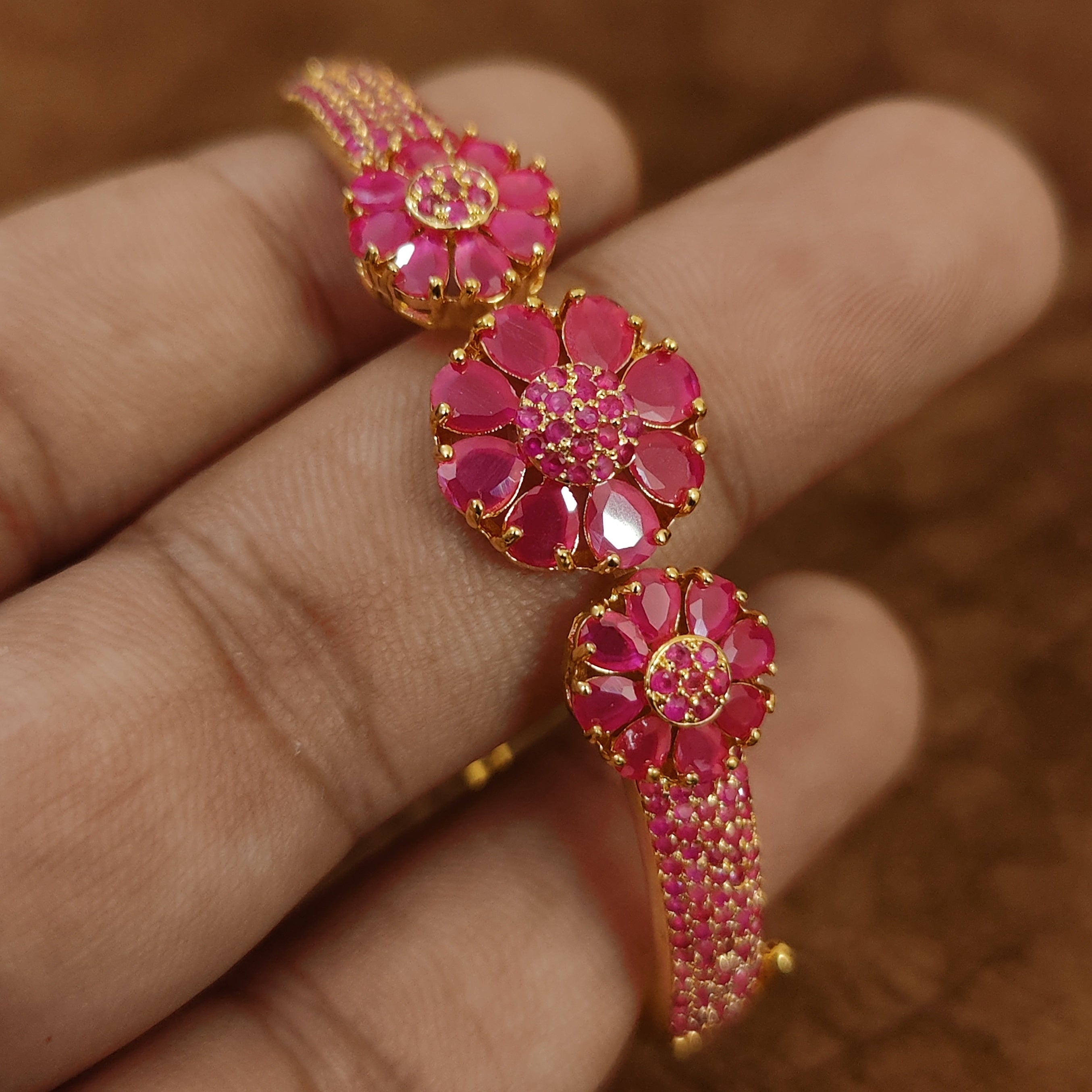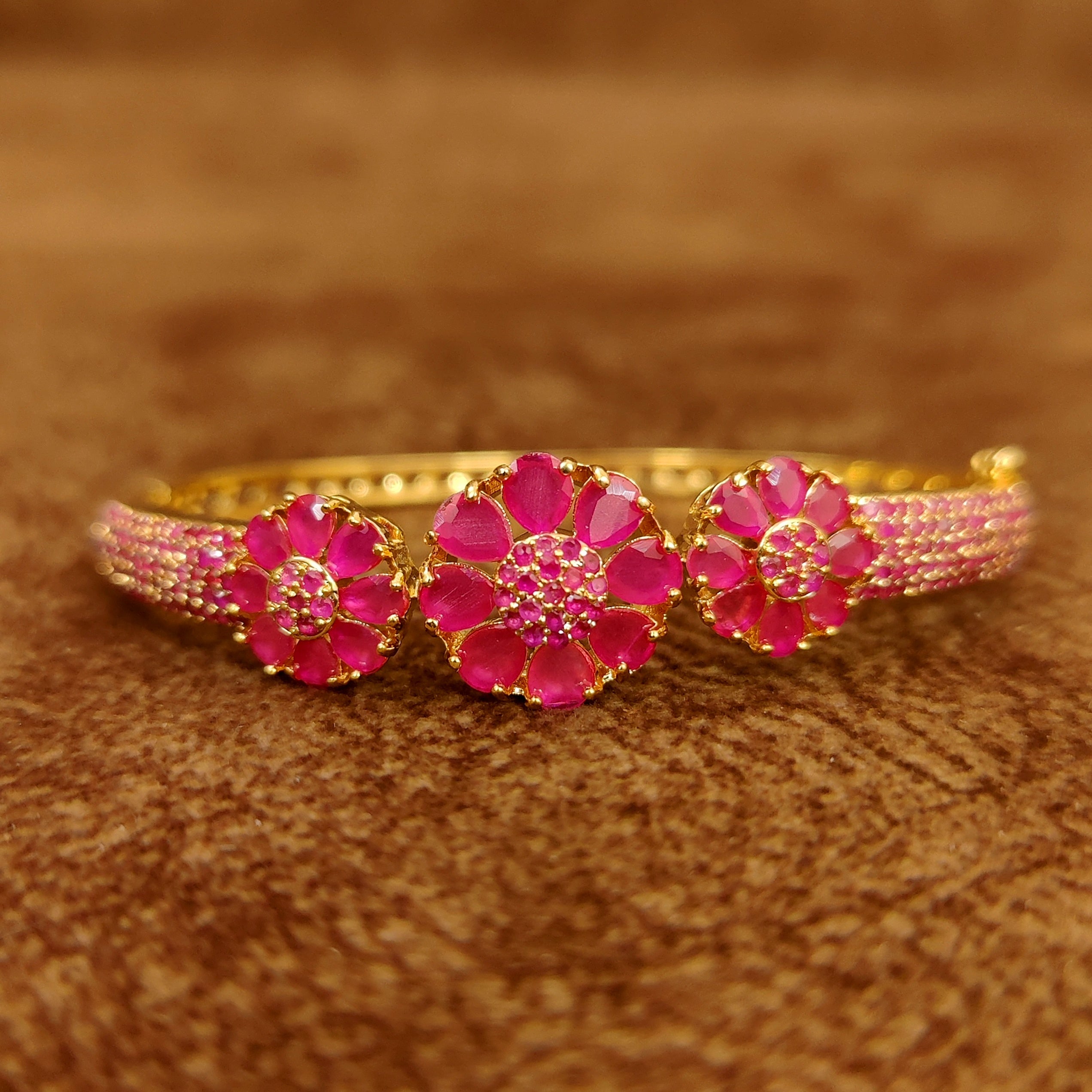 RUBY GOLD PLATED CZ STUDDED OPENABLE BRACELET
