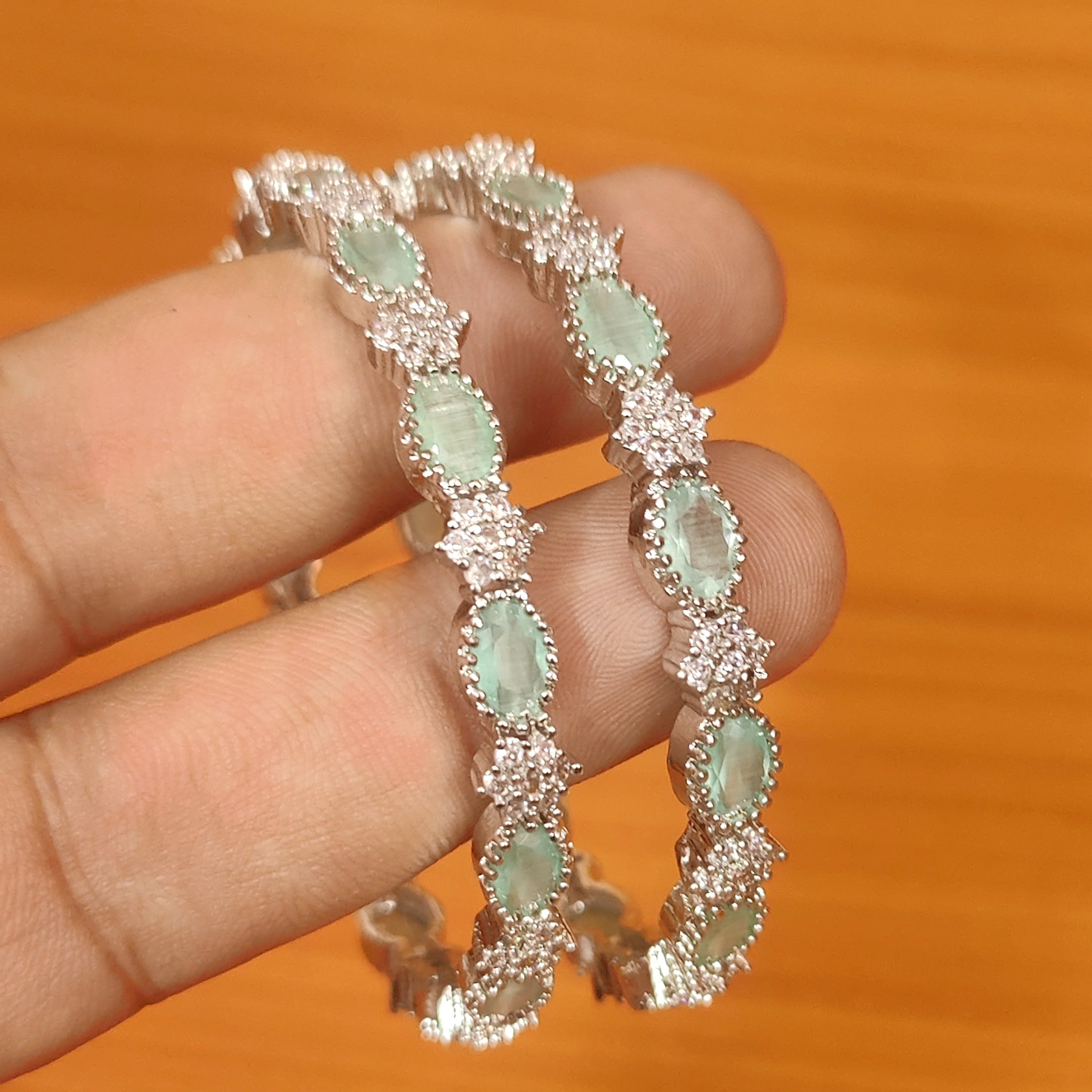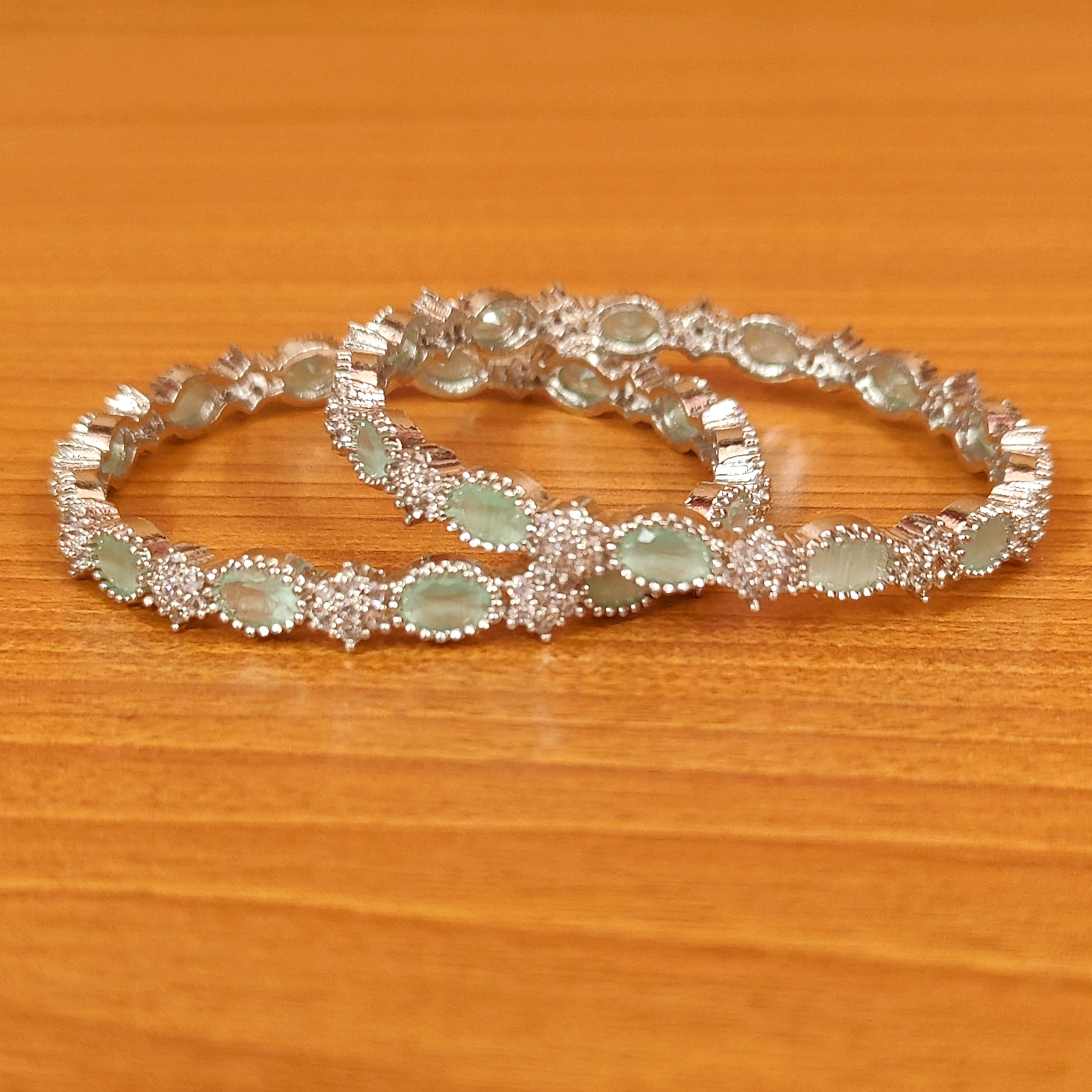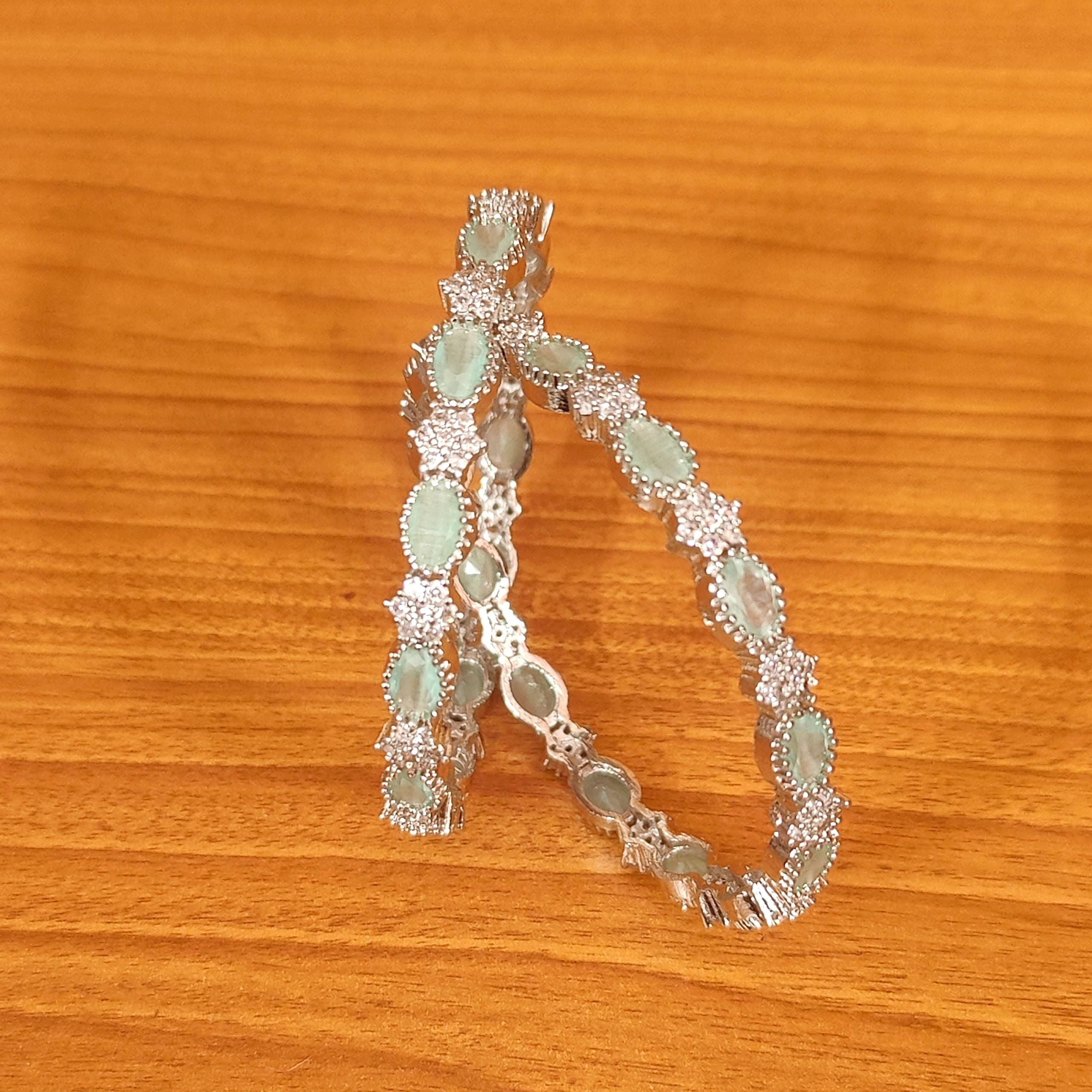 SILVER PLATED AMERICAN DIAMIND & MINT GREEN CZ BANGLES