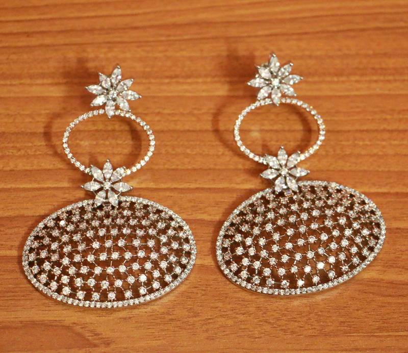These diamond look studs are handcrafted in silver alloy with imitation cz stones of very fine quality. These earrings are plated in white rose gold rhodium plating which gives the design a real jewelry look .