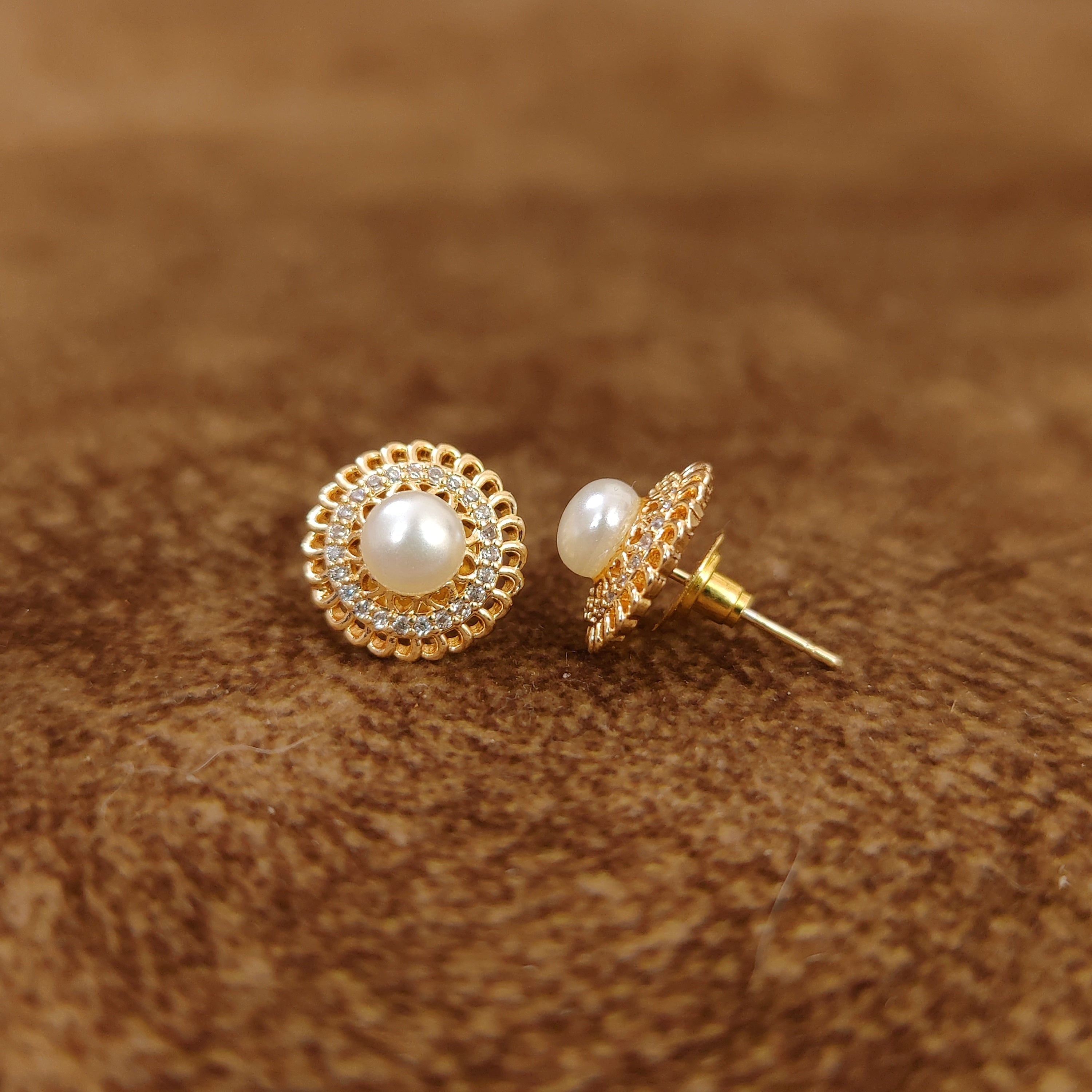 Exude timeless sophistication with the Vintage Pearl Diamond Look Studs, a perfect accessory for every elegant occasion. These exquisite studs feature dazzling diamond-look CZ stones arranged in a vintage-inspired design, beautifully accented by a luminous pearl centerpiece. Perfect for weddings, parties, or everyday elegance, they effortlessly complement both ethnic and modern ensembles.