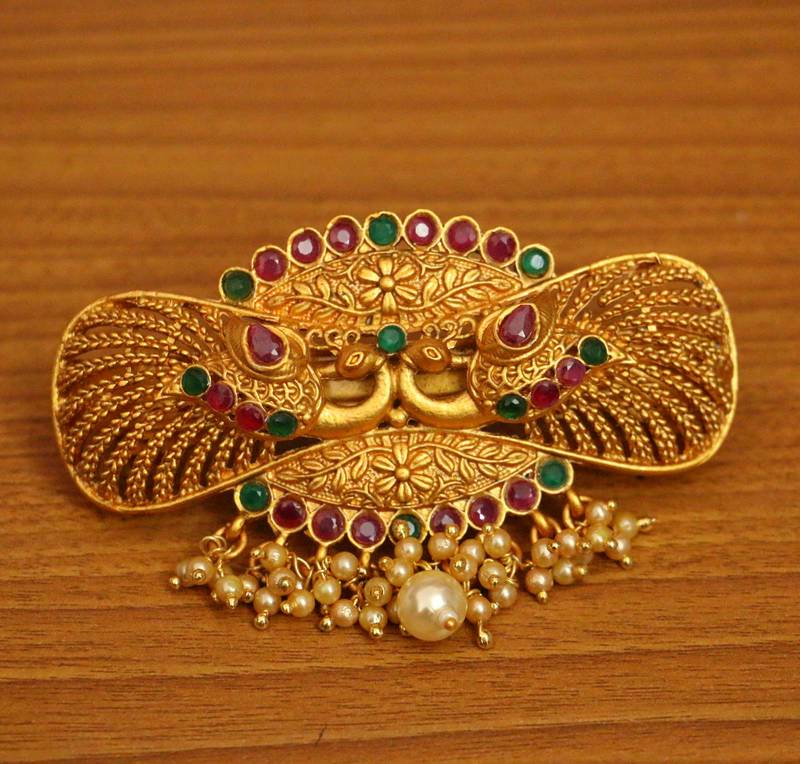 ANTIQUE TEMPLE LOOK RUBY & EMERALD PREMIUM HAIRCLIP