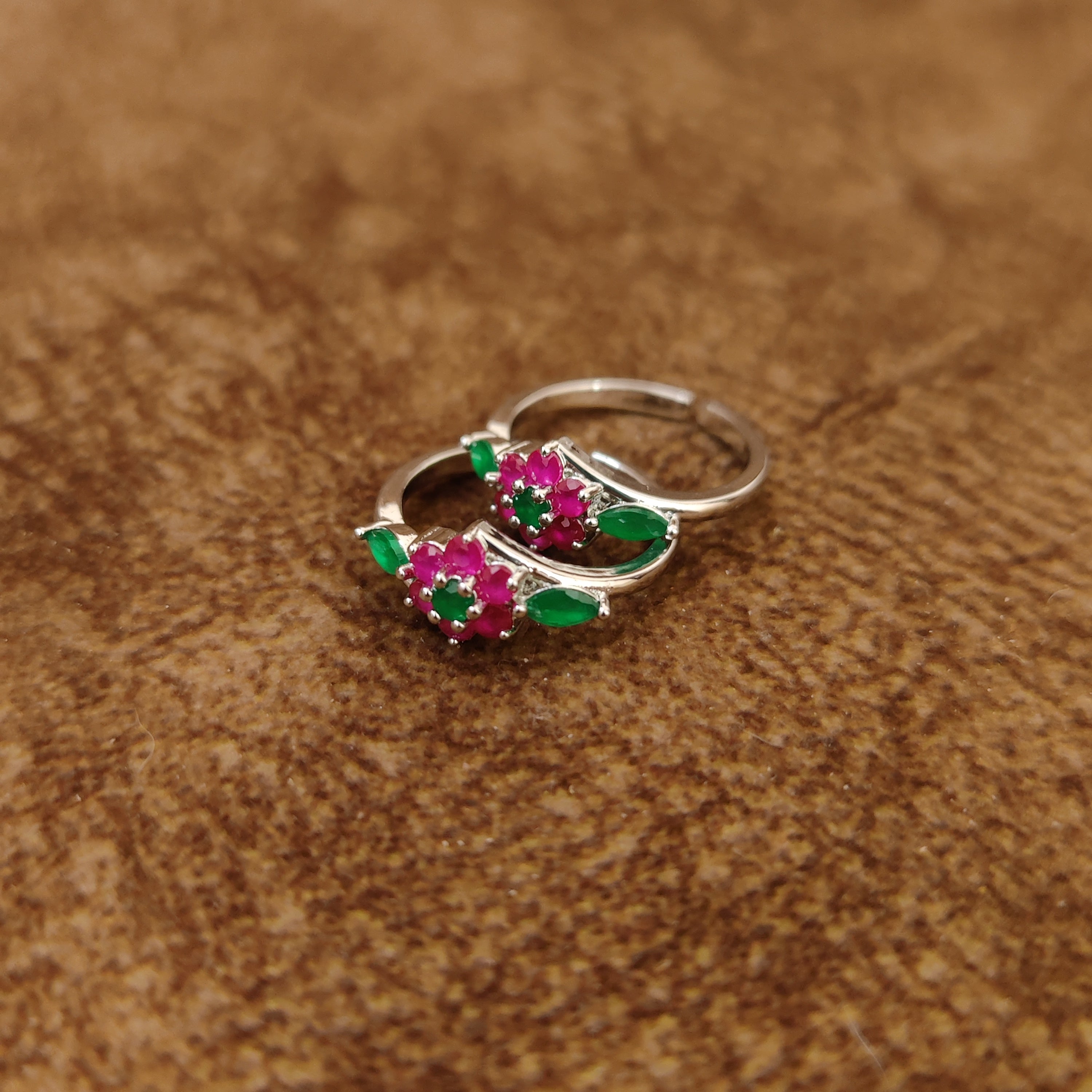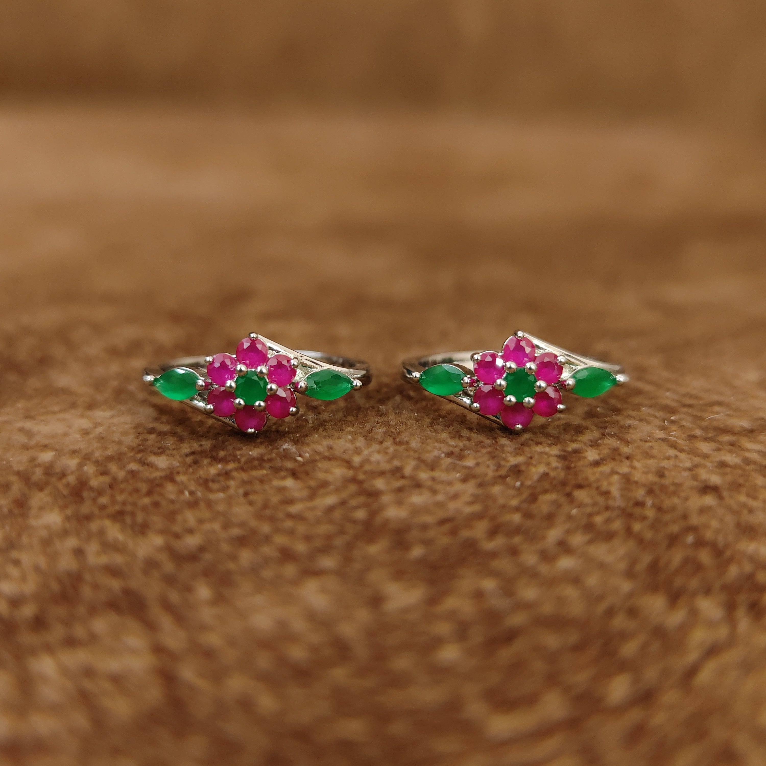 RUBY & EMERALD CZ STUDDED SILVER PLATED TOE RINGS