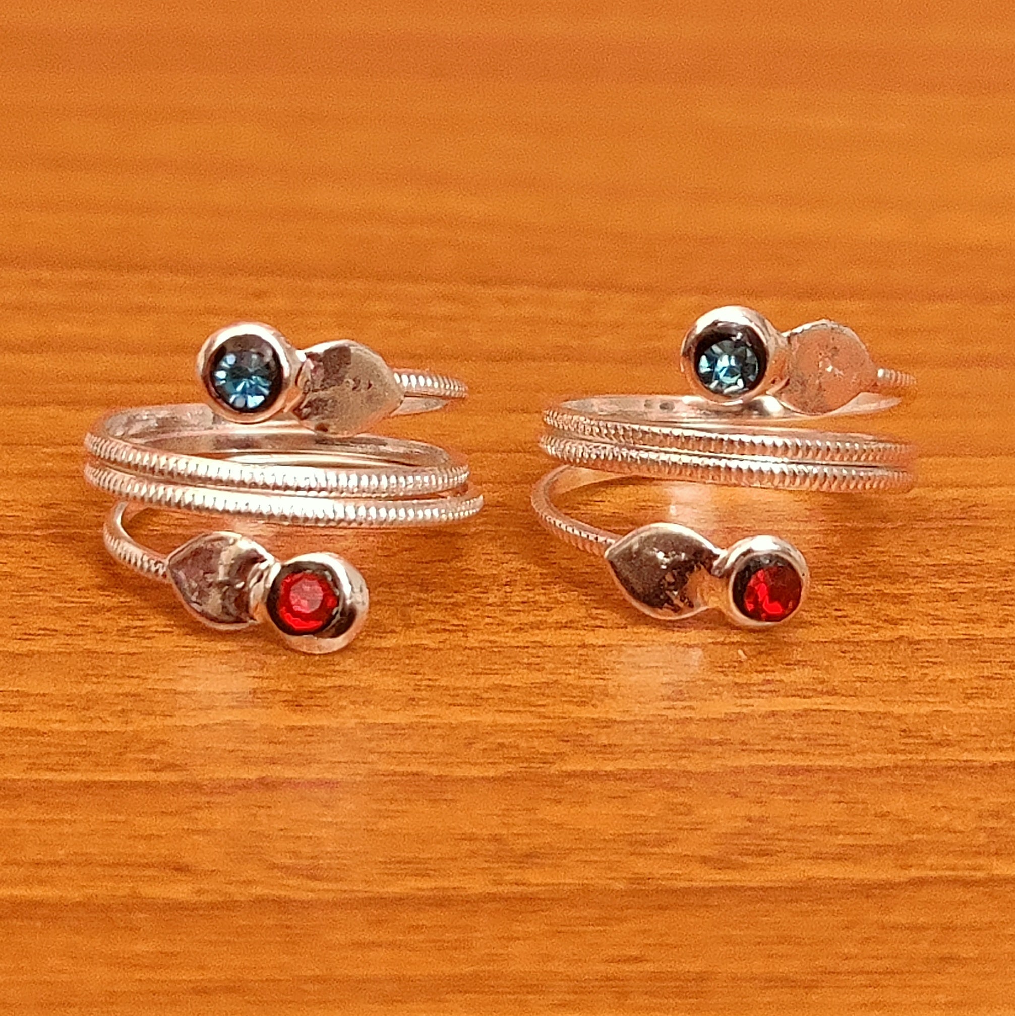 SILVER PLATED RED & BLUE COLOUR ADJUSTABLE TOE RING