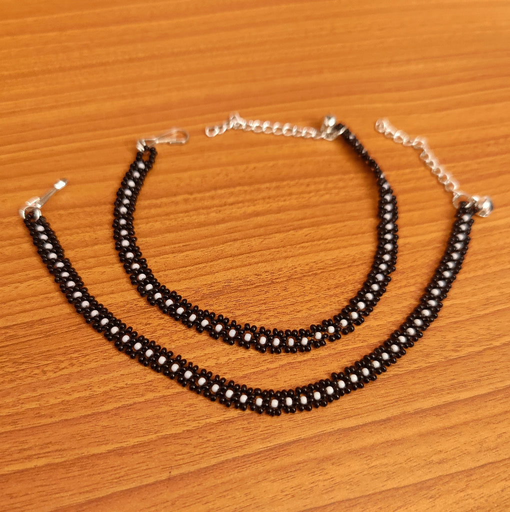 BLACK & WHITE BEADS SILVER PLATED ANKLETS
