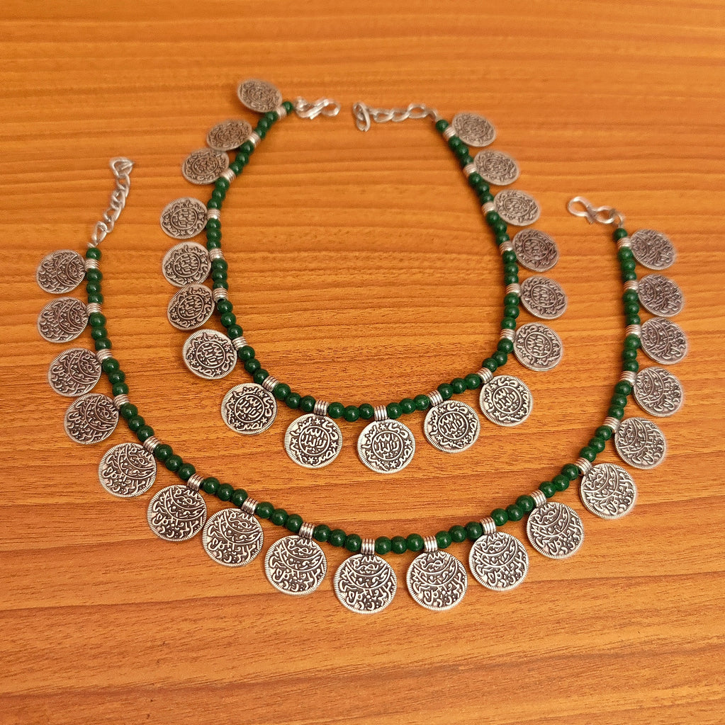 OXIDISED SILVER LOOK TRADITIONAL ANKLETS