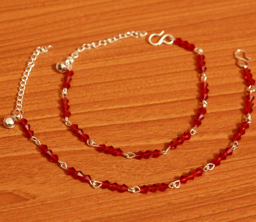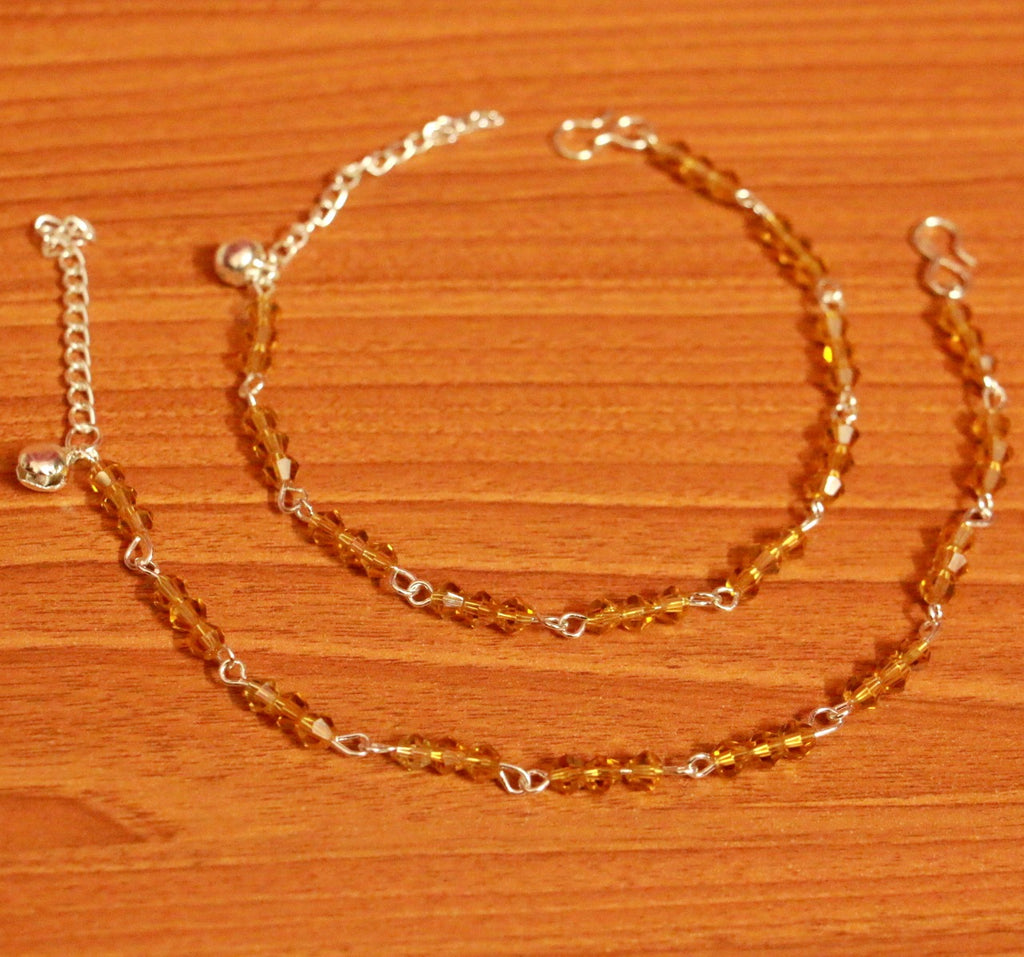 Aqua Blue Crystal Beaded Silver Plated Anklets