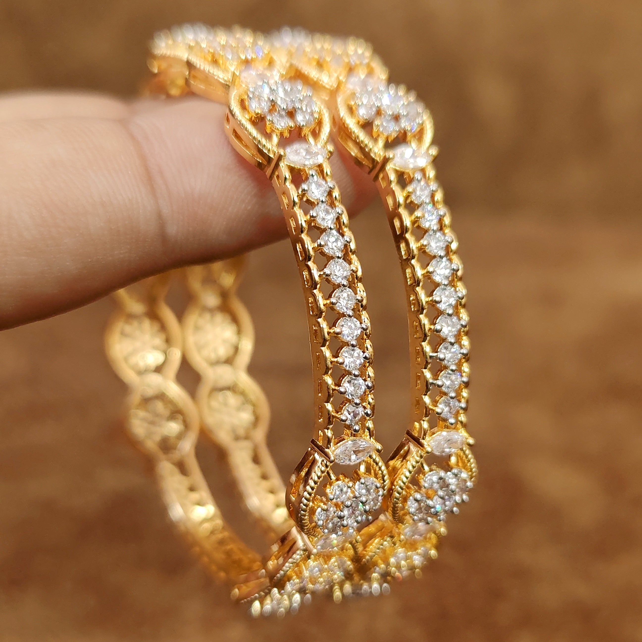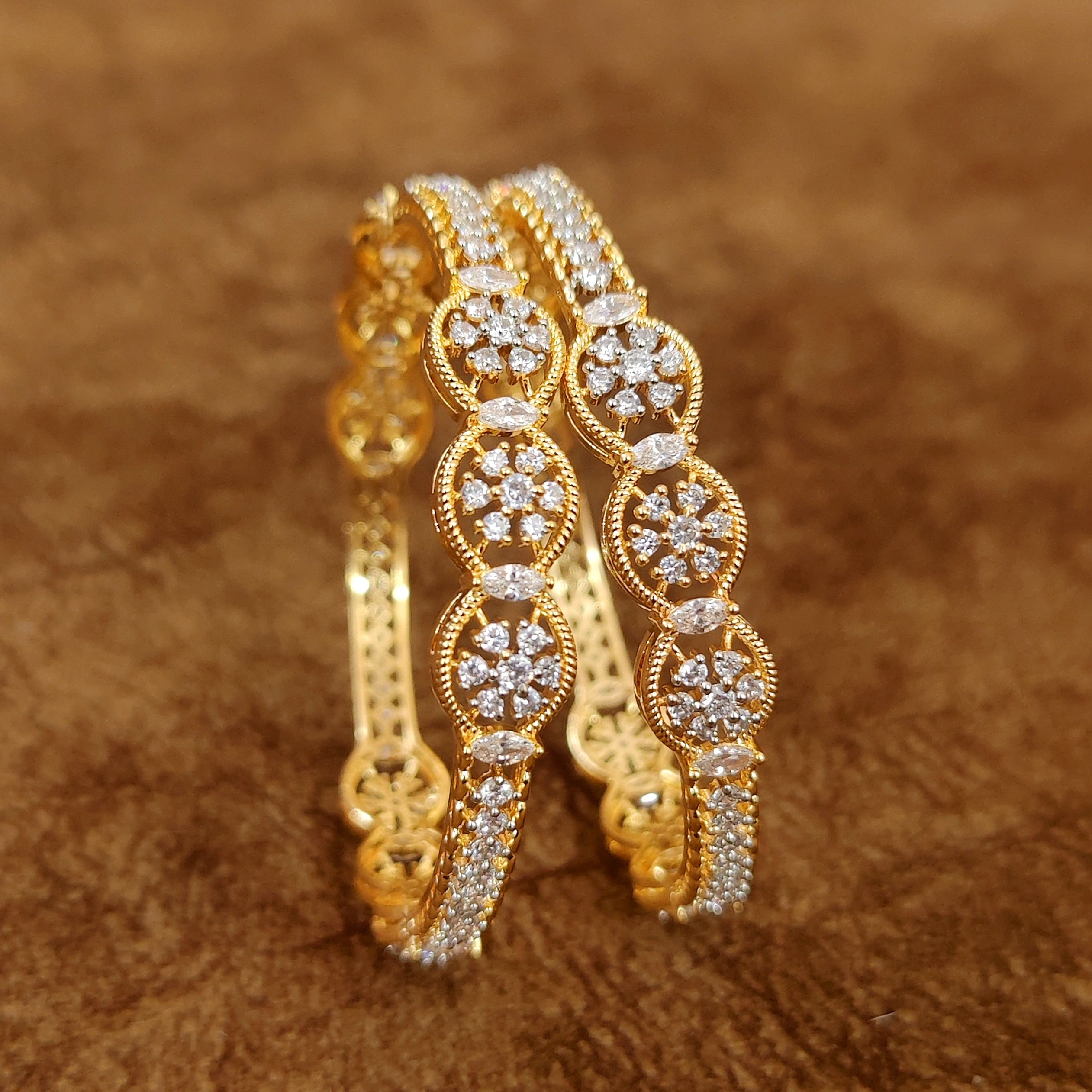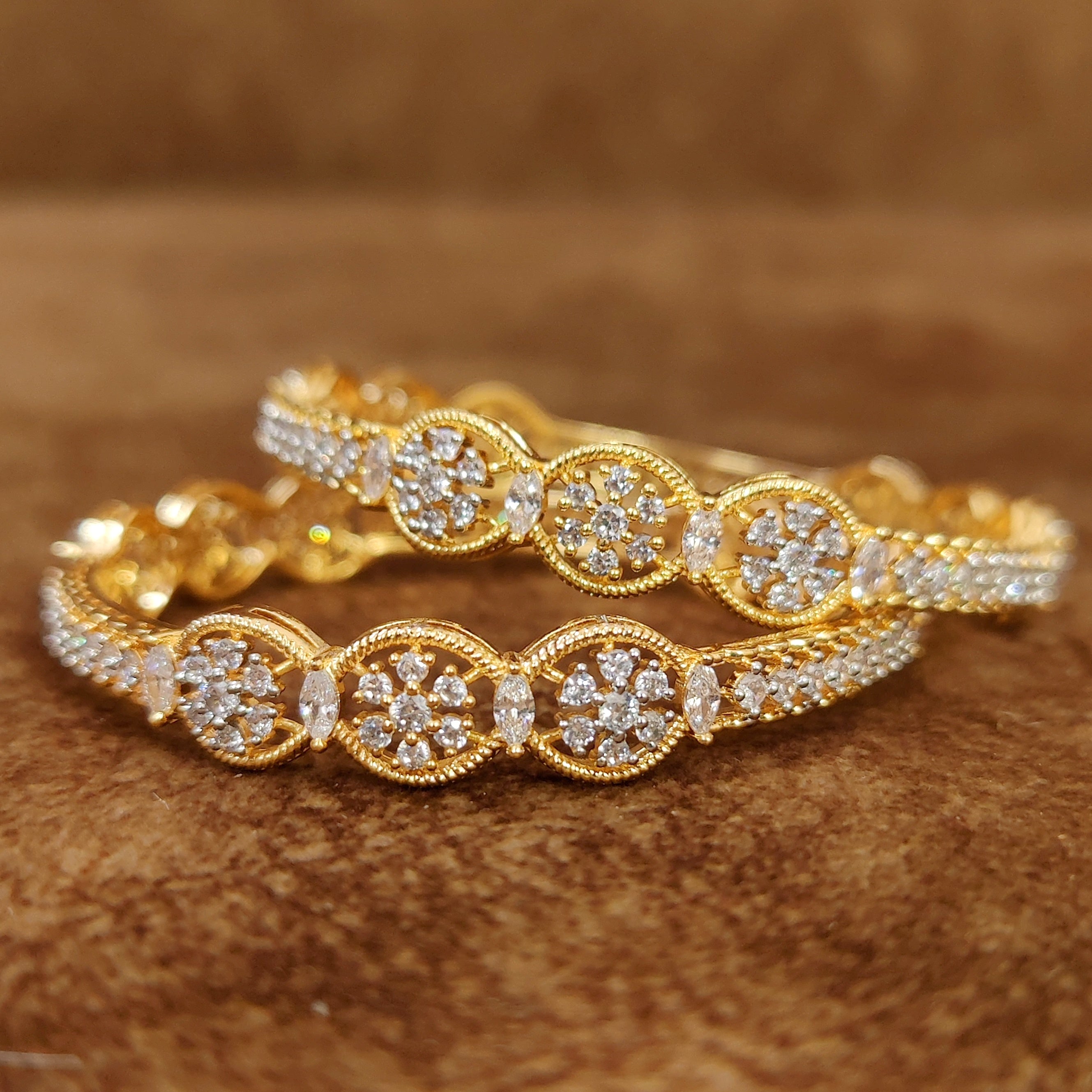 INTRICATE DESIGN PATTERN DIAMOND LOOK GOLD PLATED BANGLES