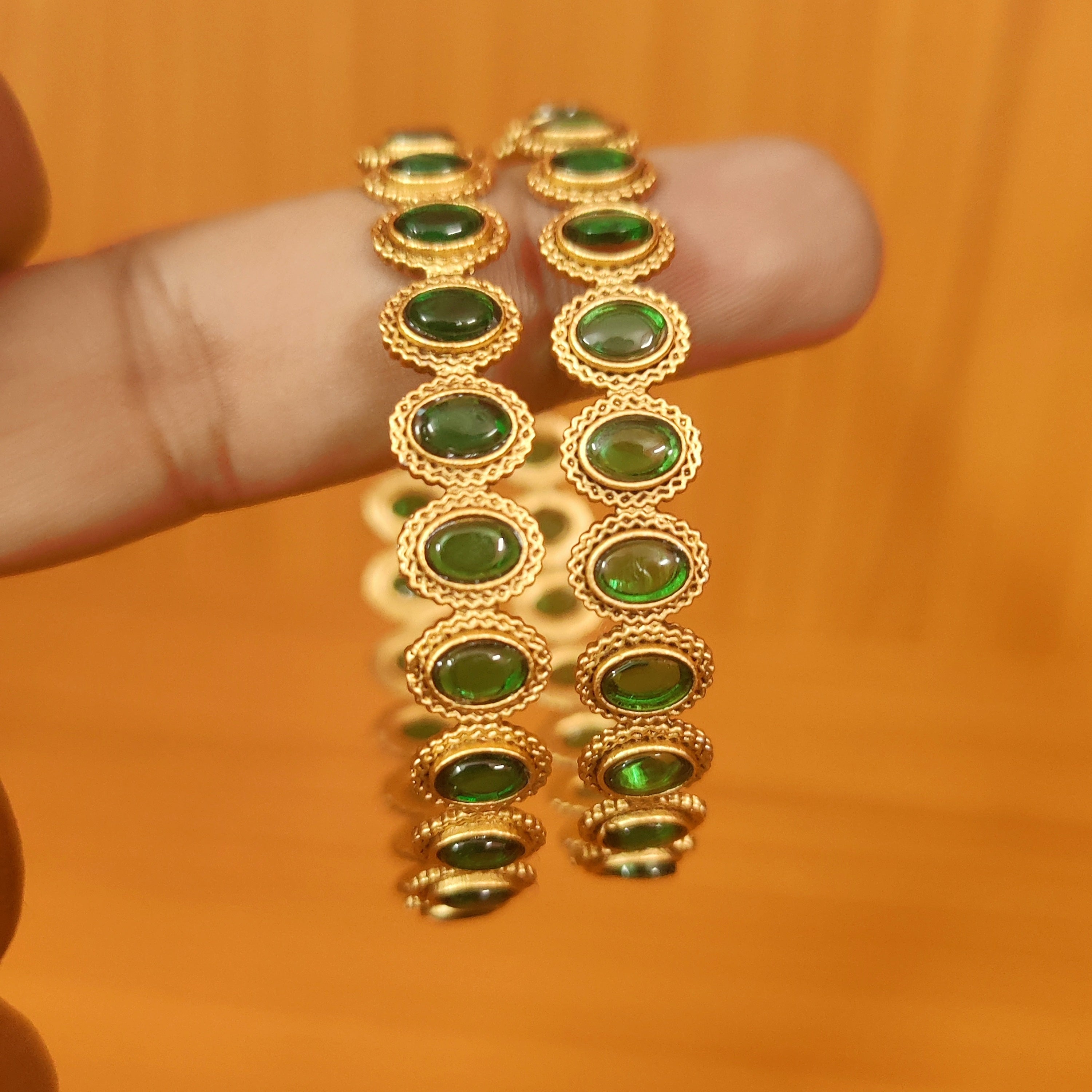 EMERALD LOOK GREEN KEMPU STONE MATT GOLD LOOK BANGLES