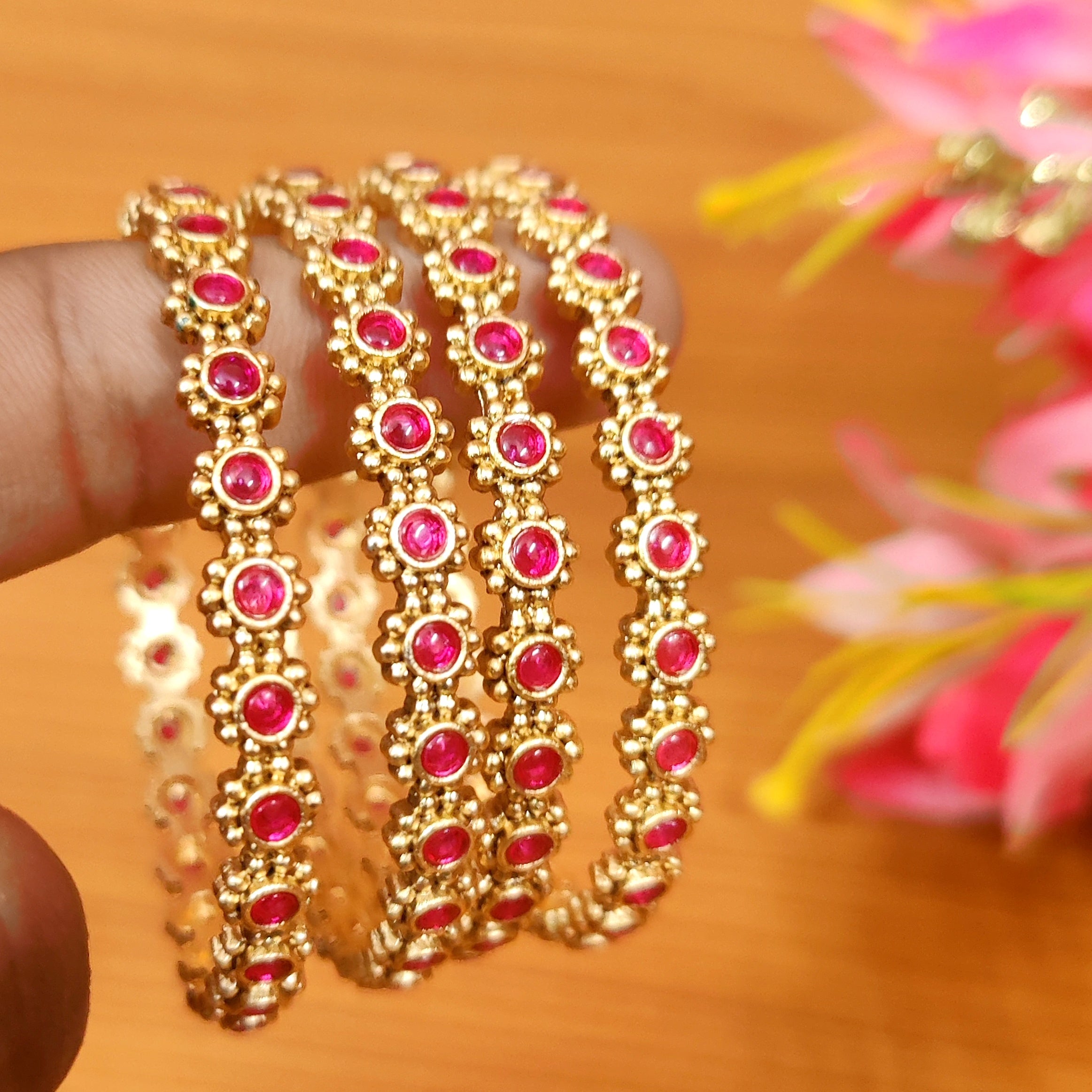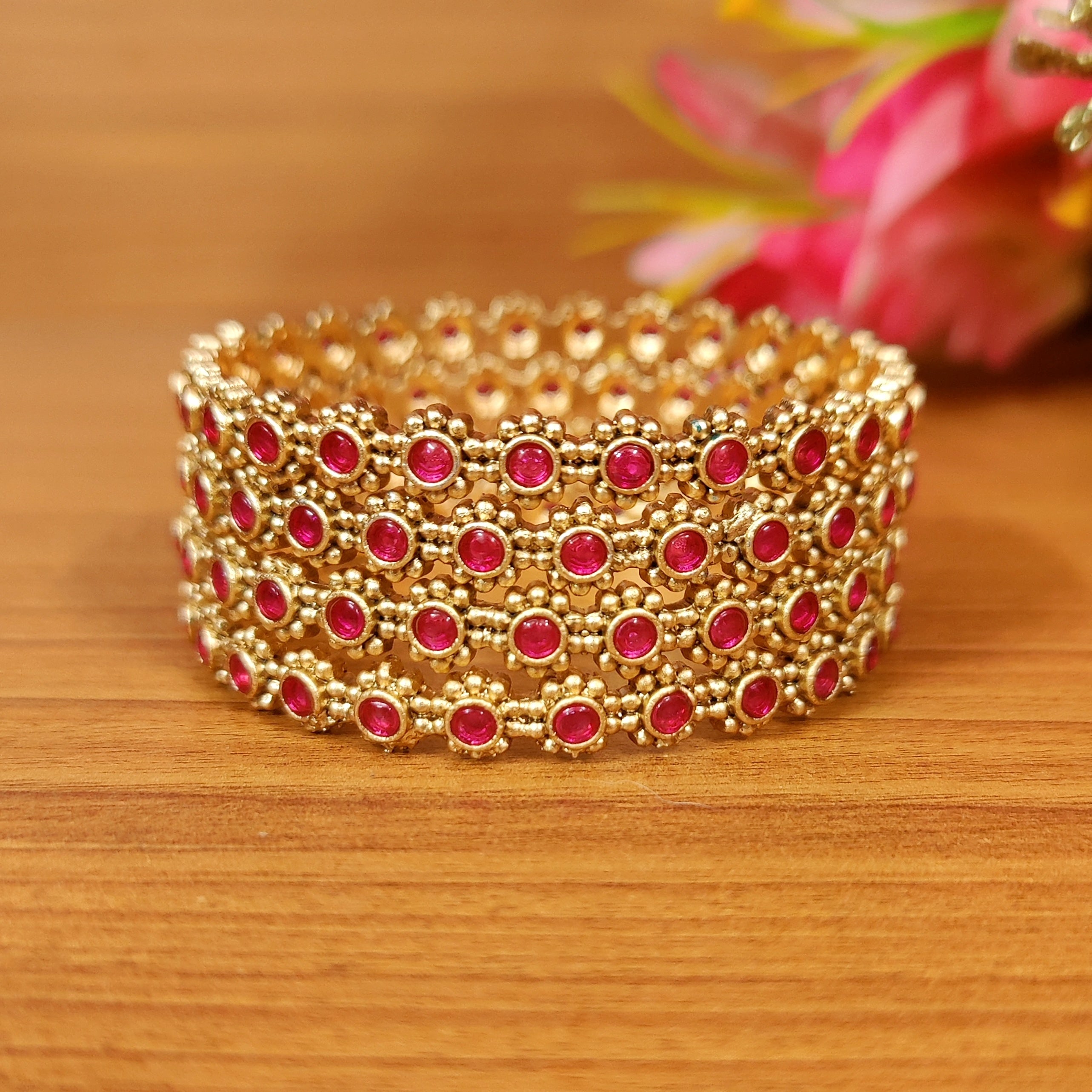 RED KEMPU STONE GOLD PLATED BANGLES