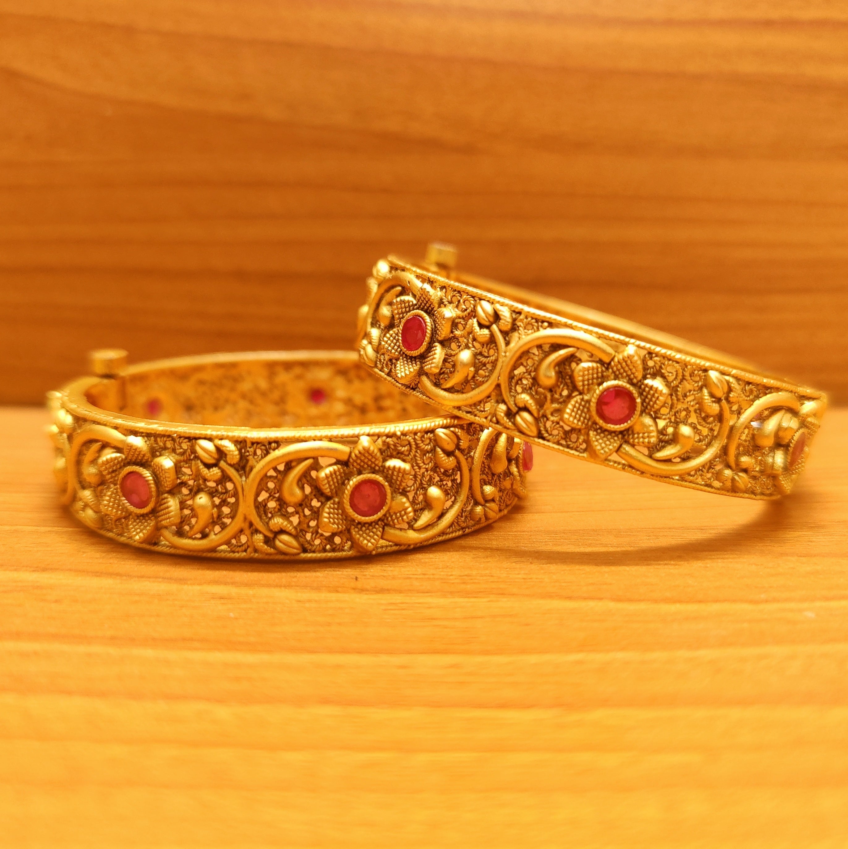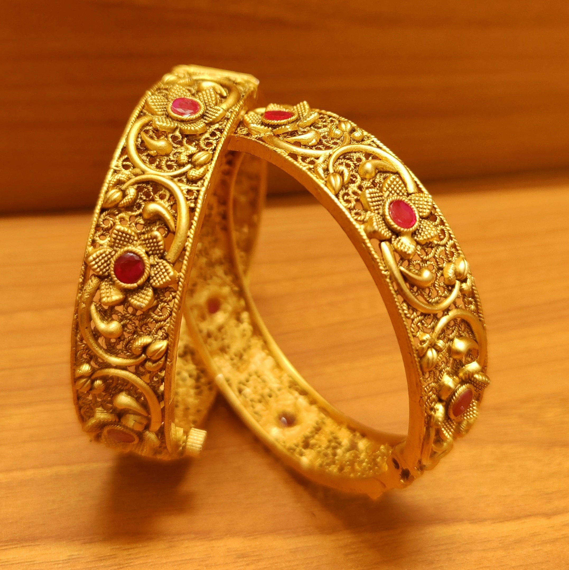 ANTIQUE MATT GOLD LOOK RUBY OPENABLE BANGLES