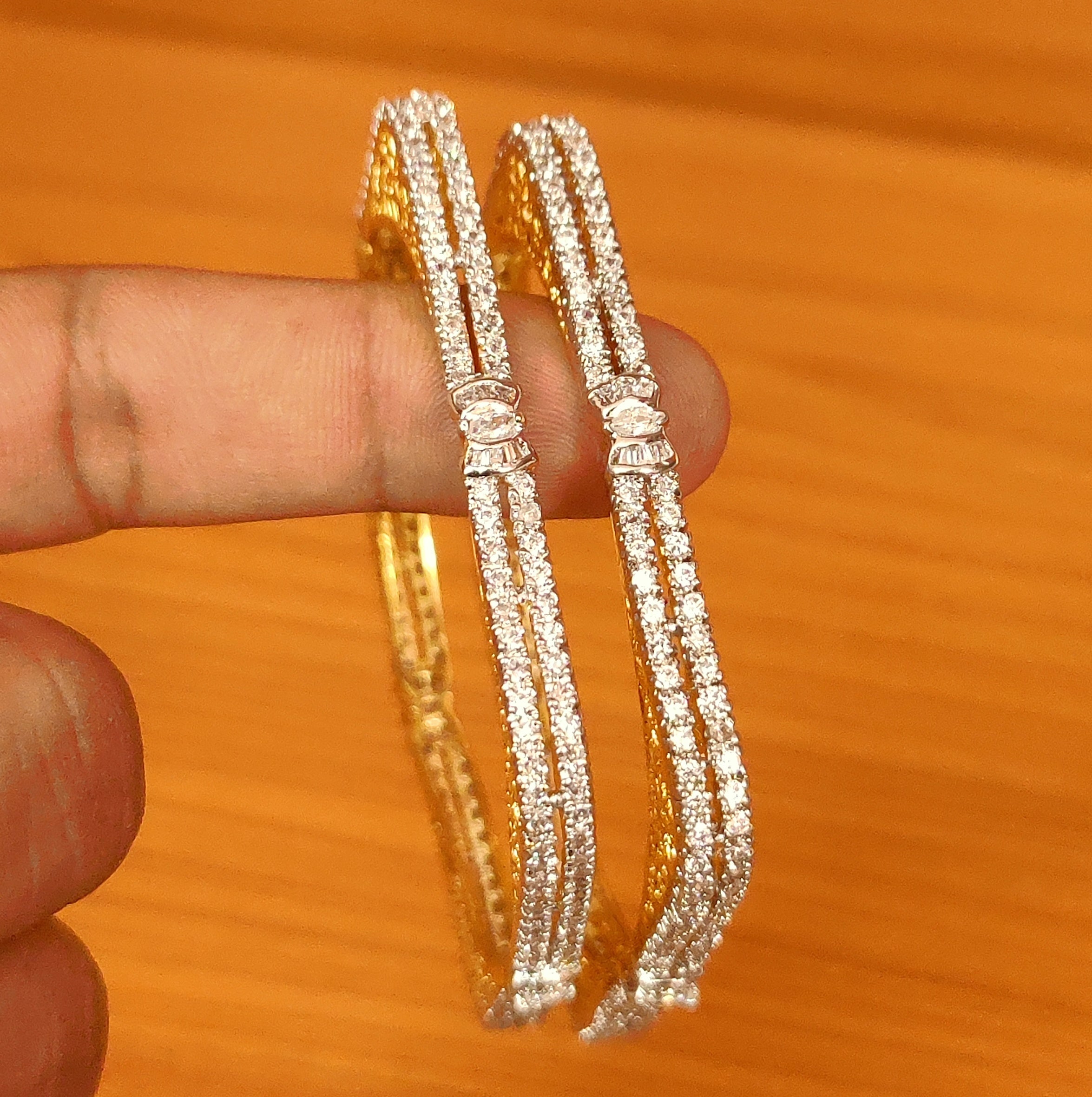 DIAMOND LOOK CZ STUDDED SQUARE SHAPED BANGLES