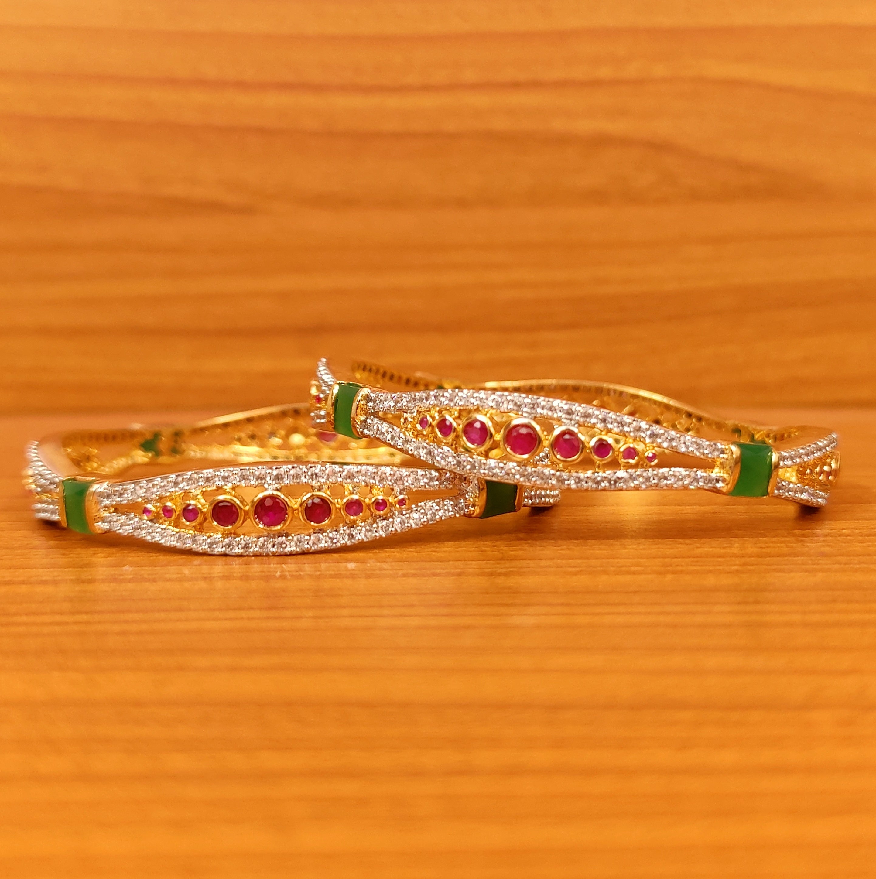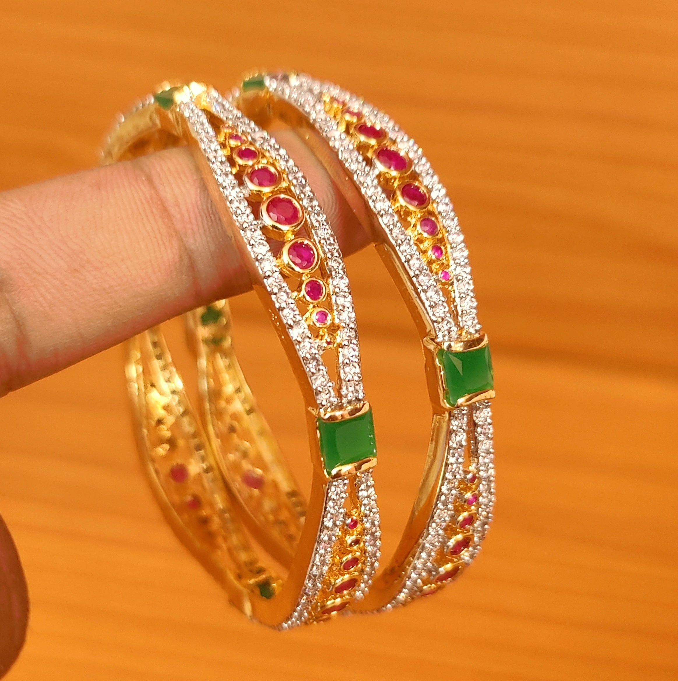 RUBY & EMERALD CZ STUDDED DIAMOND LOOK BANGLES