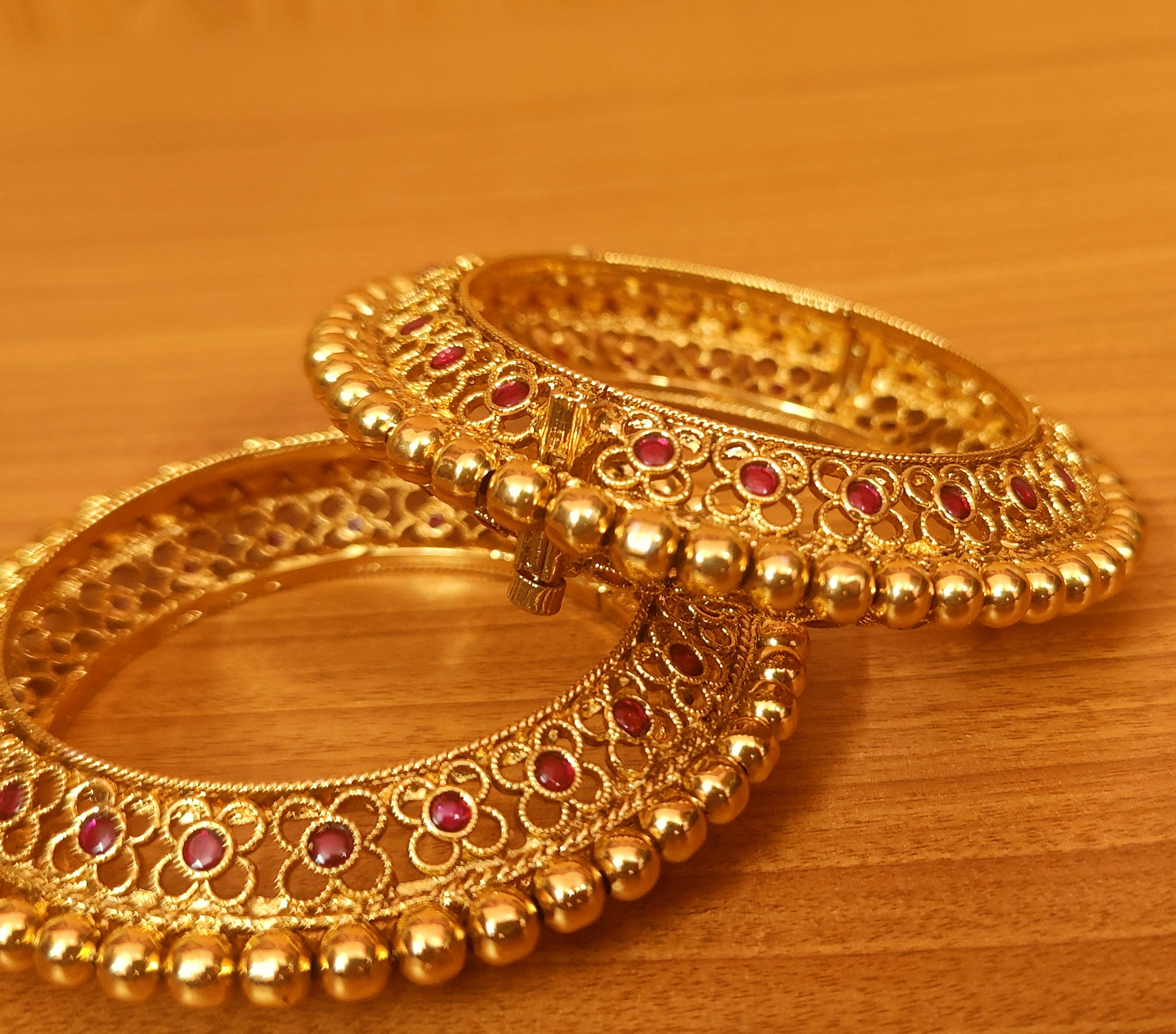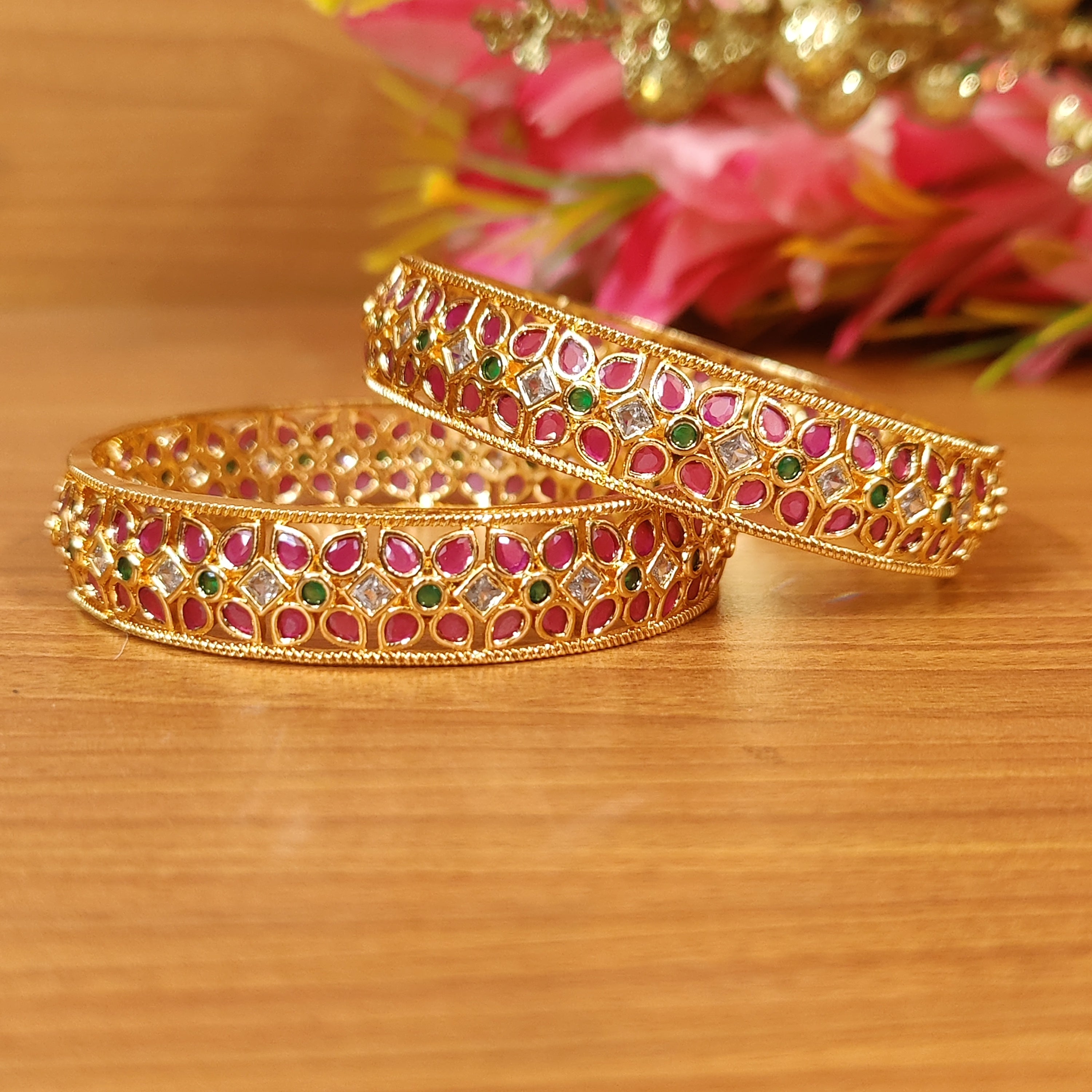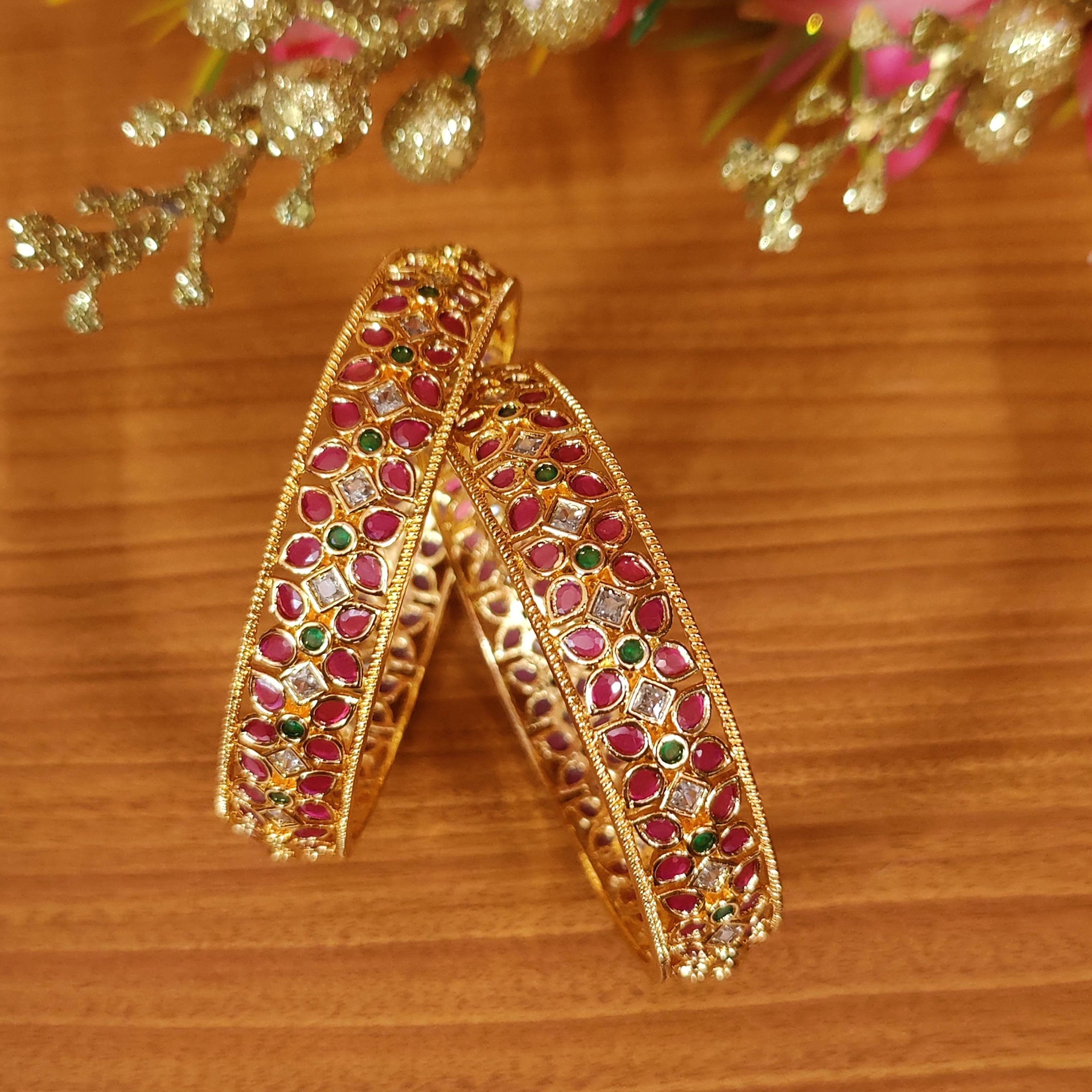 RUBY & CZ STUDDED FINE CRAFTED GOLD LOOK BANGLES