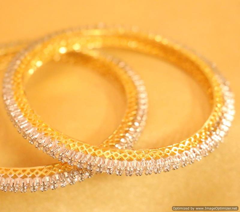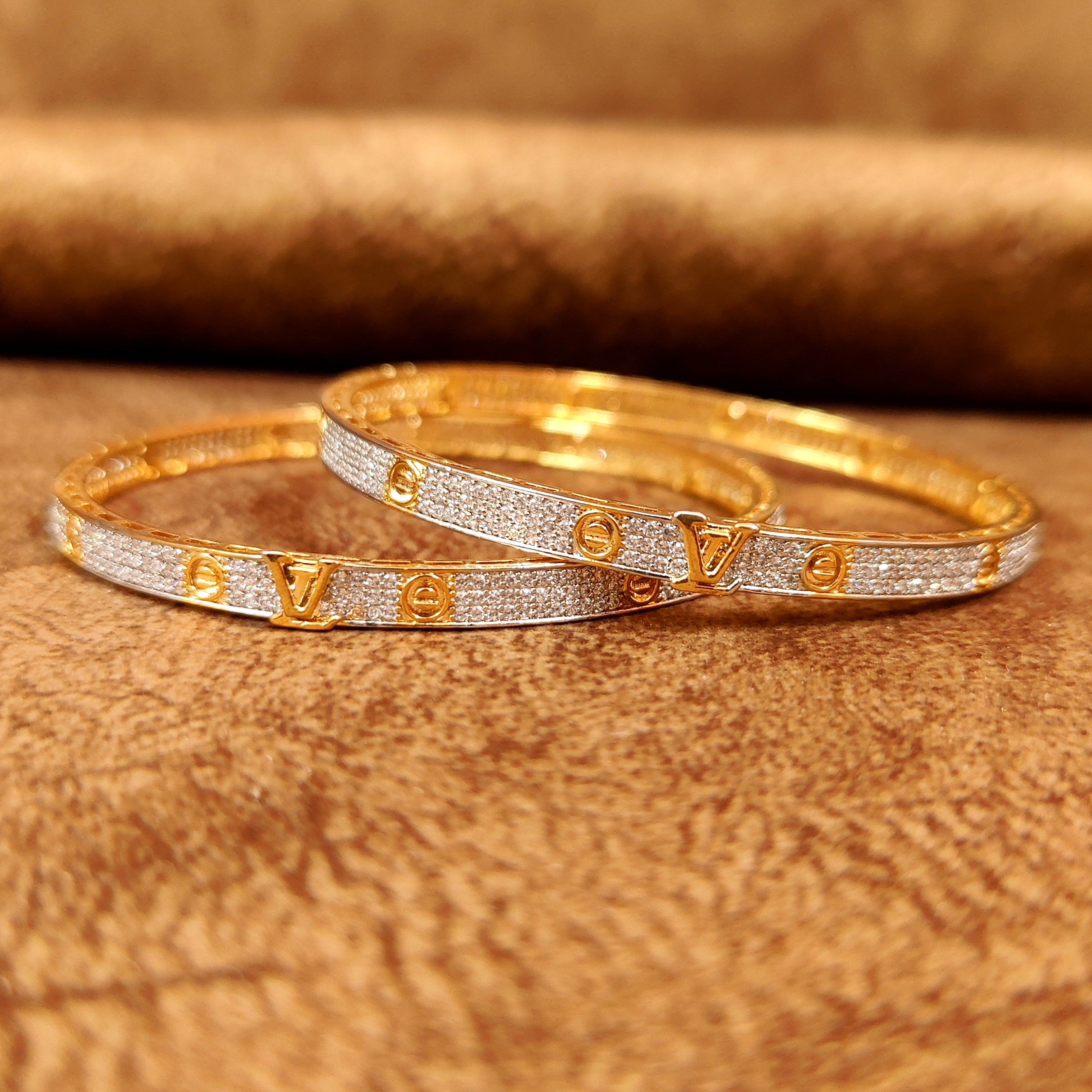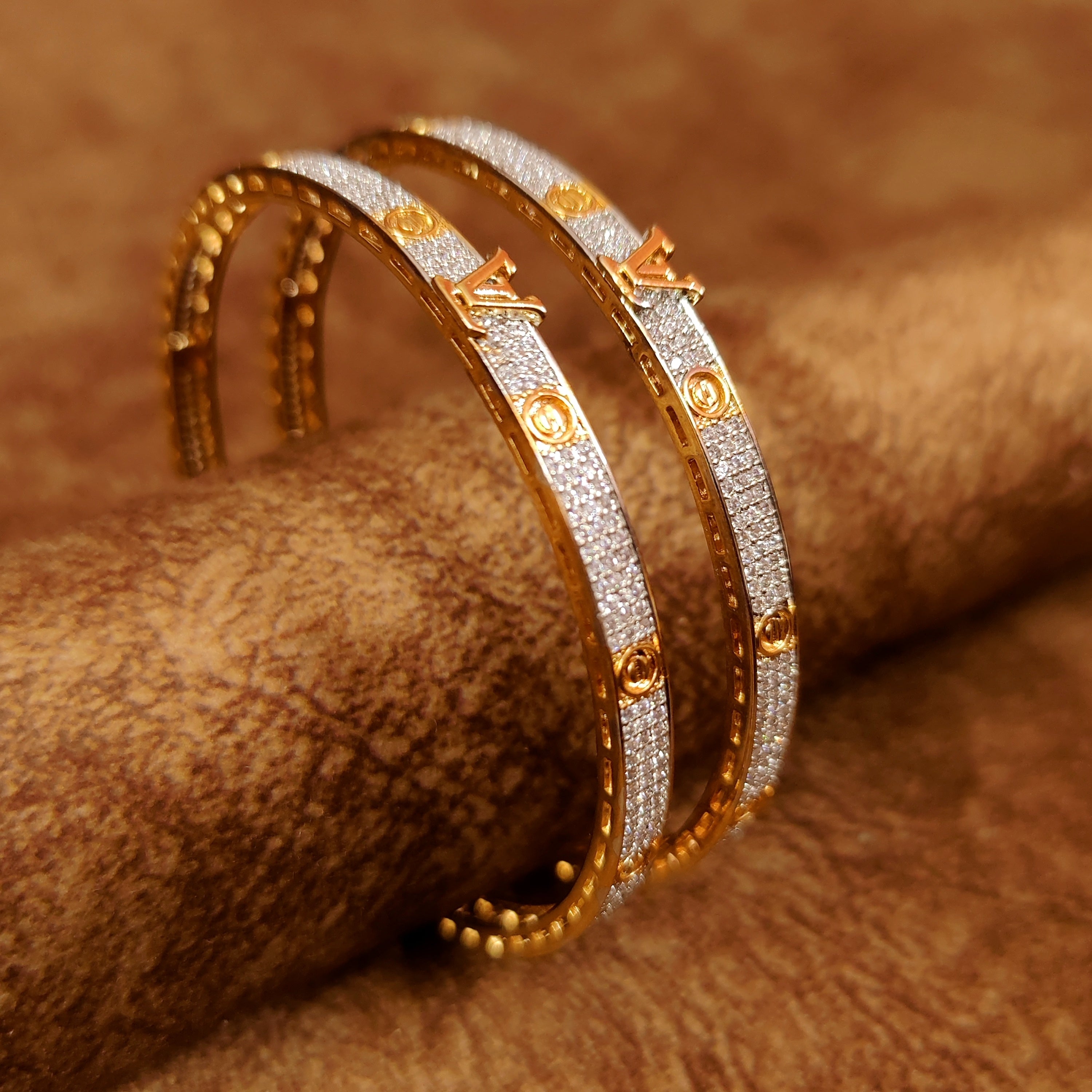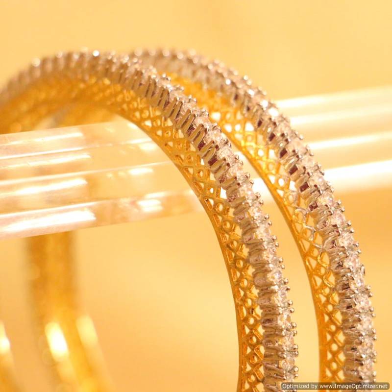 Diamond & Gold Pattern Cz Gold plated Bangles